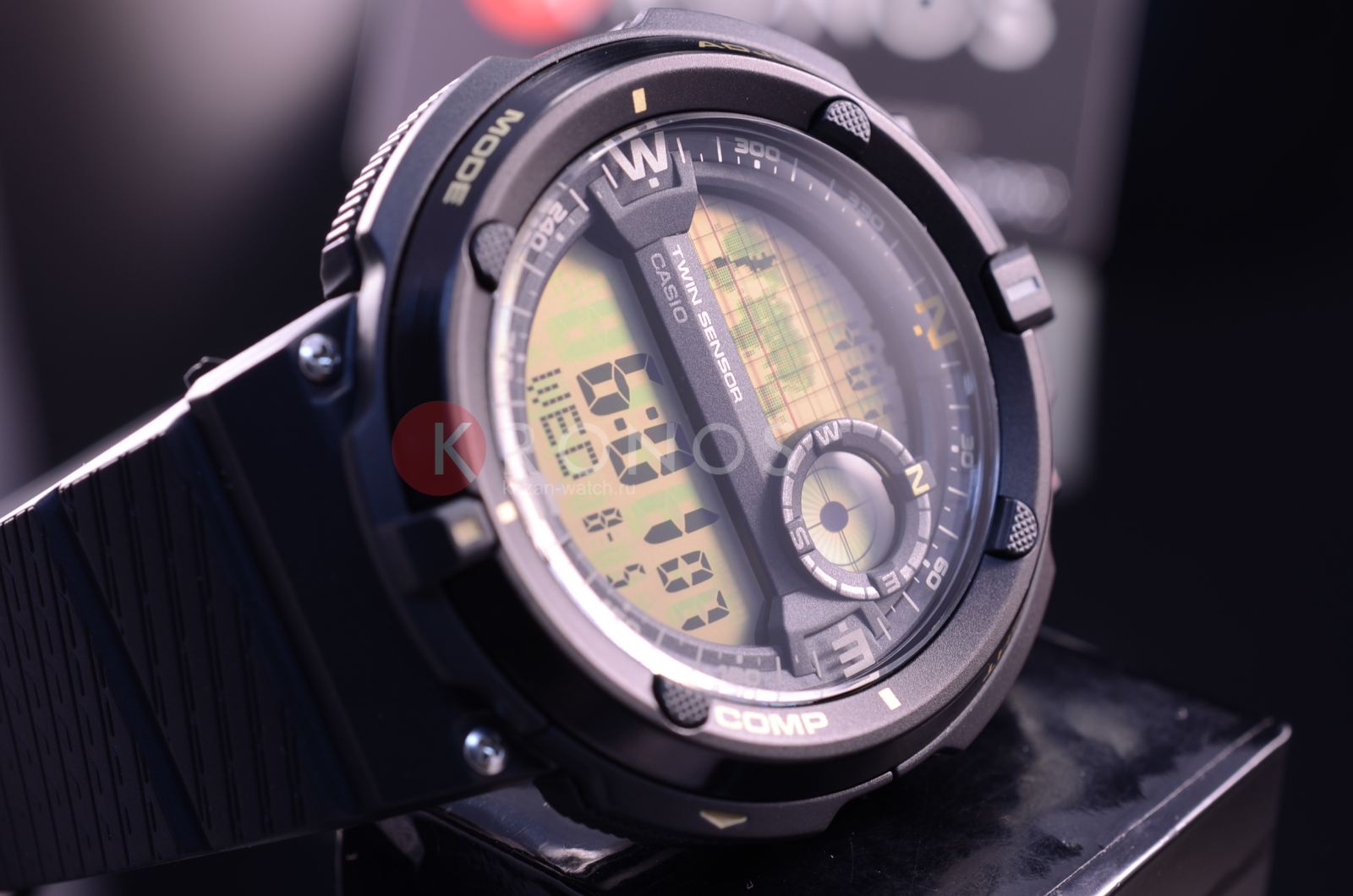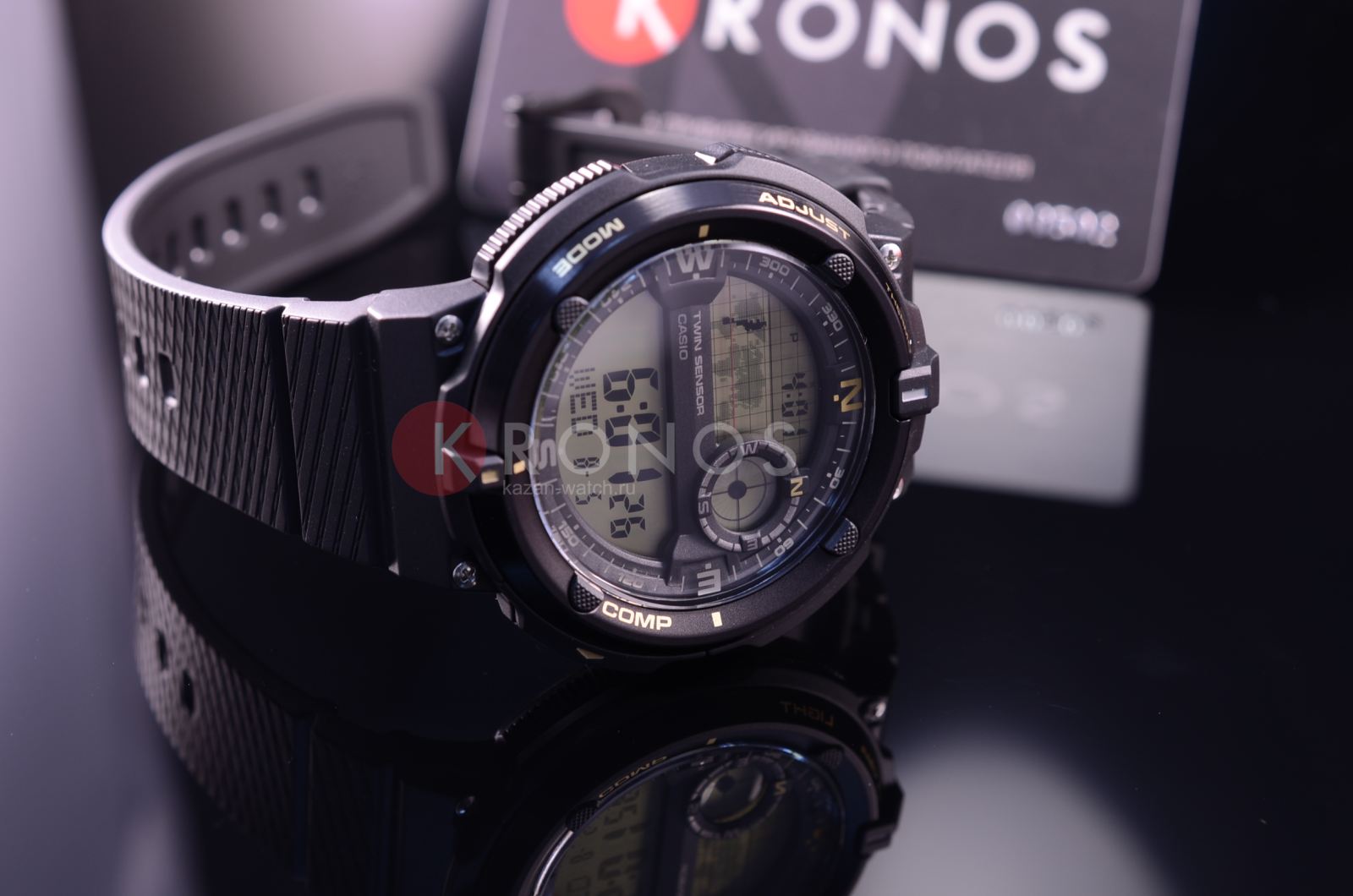 Прочный круглый корпус выполнен из пластика и алюминия. Тип механизма - электронный. Есть сплит-хронограф. В часы встроены 5 ежедневных будильников. Электролюминесцентная подсветка обеспечивает видимость данных в темноте. Вставлен алюминиевый безельБезельВнешний ободок, закрепляющий стекло. В спортивных часах так называется поворотное кольцо с делениями на циферблате, выполняет роль таймера – замеряет отрезки времени на шкале. Неподвижный безель – элемент декора. Однонаправленно вращающийся безель на дайверских часах позволяет фиксировать моменты погружения и выныривания на поверхность.. Водонепроницаемость составляет 100 WR.