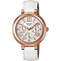 Стильные женские наручные часы, выполненные в fashion стиле. Кварцевые часы с элементом питания SR920SW. Корпус часов выполнен из высокопрочной стали с полным IP покрытием золотого цвета. Золотые индексы и стрелки на светлом циферблате. Водонепроницаемость часов 50 метров, минеральное стекло, устойчивое к царапинам. Украшены часы кристаллами Swarovski.  Ремешок из натуральной кожи белого цвета прочно удерживает часы на руке.
