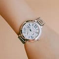 Стильные женские наручные часы, выполненные в fashion стиле. Кварцевые часы с элементом питания SR920SW. Корпус и браслет часов выполнены из высокопрочной стали с частичным IP покрытием. Контрастные синие индексы и стрелки, циферблат украшен кристаллами Swarovski. Водонепроницаемость часов 50 метров, минеральное стекло, устойчивое к царапинам.