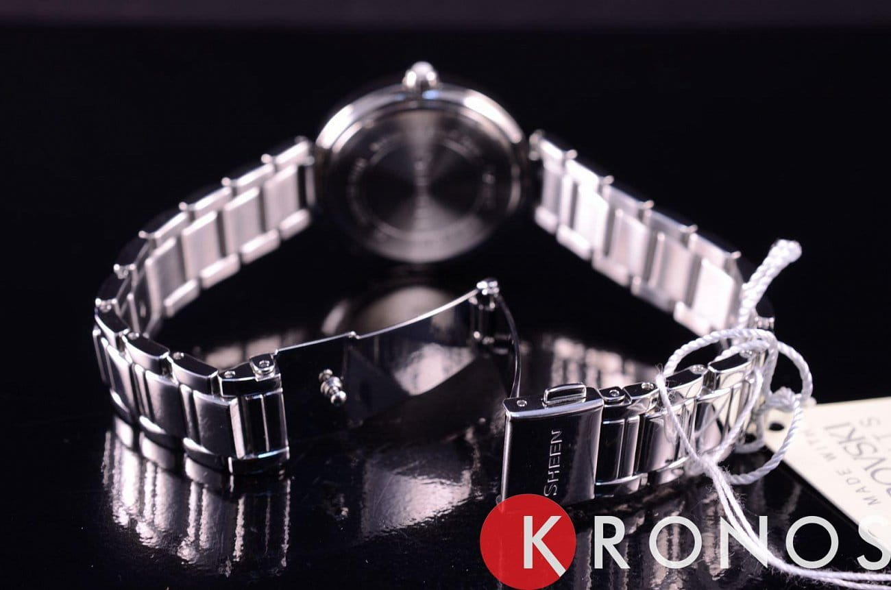 Стильные японские женские часы. Корпус и браслет выполнены из нержавеющей стали с IP покрытием. Водозащита 50м. Циферблат украшен кристаллами Swarovski.