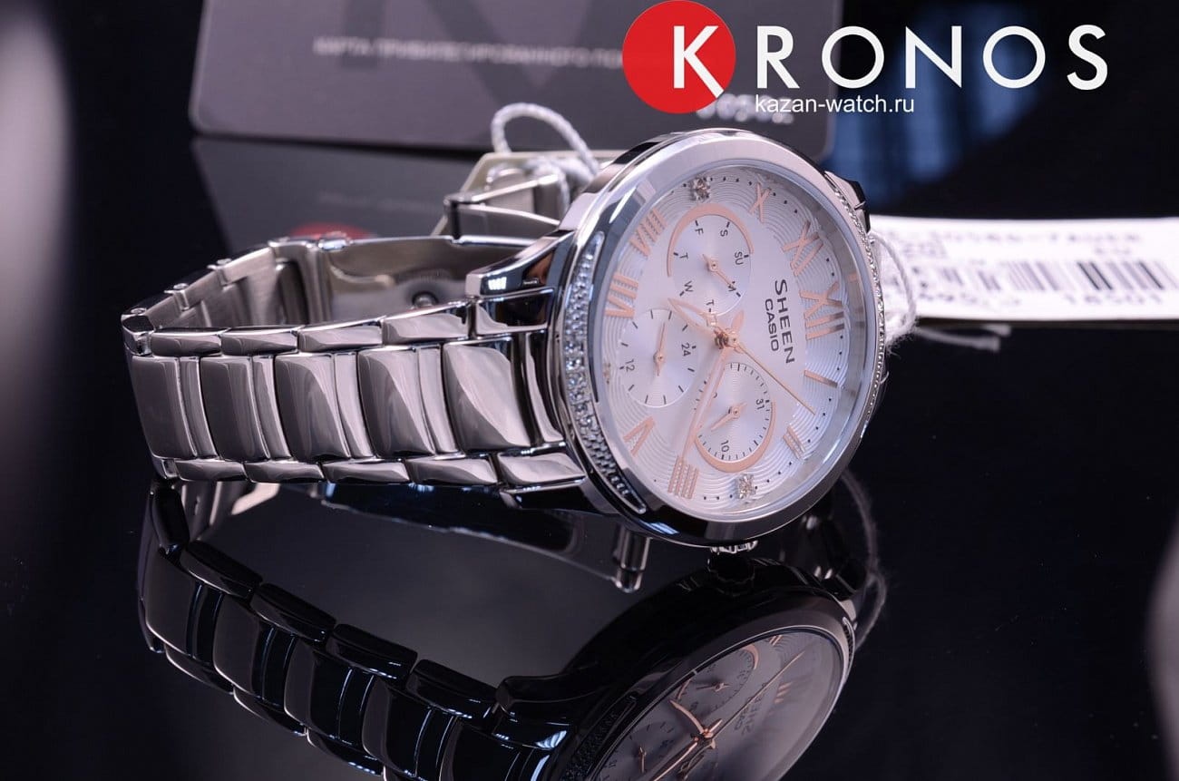 Напоминаем, что коллекция Casio Sheen - это линейка ультра-стильных женских фешн-часов в стальном корпусе, способных украсить собой самое изысканное и утонченное женское запястье. Особенностью коллекции, сделавшей ее популярной во всем мире, является использование знаменитых кристаллов Swarovski® в отделке циферблата каждой модели Sheen.