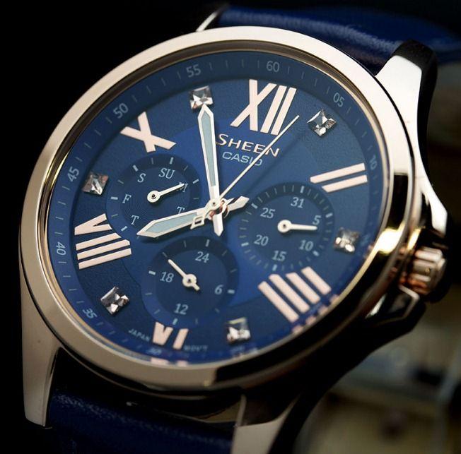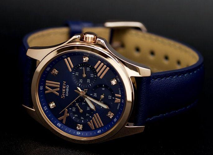 Современные женские наручные часы, выполненные в fashion стиле. Кварцевые часы с элементом питания SR920SW. Корпус часов SHE-3806GL-2A выполнен из высокопрочной стали с полным IP покрытием. Синий фон циферблата перекликается с ярко-синим цветом ремешка из натуральной кожи. Водонепроницаемость часов 50 метров, минеральное стекло.  Украшены часы вставками из кристаллов Swarovski квадратной формы. Эти часы привлекут всеобщее внимание.