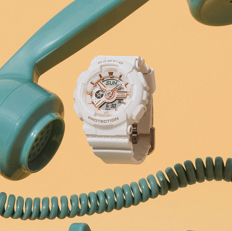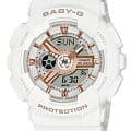 Японские женские многофункциональные часы BA-110XRG-7A из коллекции Baby-G. Функции: автоматическая светодиодная подсветка, ударопрочный корпусУдаропрочный корпусМеханизм заключён в корпус, выполненный из современных материалов, устойчивых к ударам, механическим повреждениям и падению с высоты: инновационный пластик, карбон, нержавеющая сталь, титан., функция мирового времениМировое время Полезное часовое усложнение, отображающее время в основных городах и известных областях по всему миру, оно связано с часовыми поясами, удобно для путешественников и бизнесменов. , – 48 городов (29 часовых поясов), всемирное координированное время (UTCUTCВсемирное кординационное время, не имеющее привязки к географическому положению Гринвича, основывается на атомном отсчёте времени. Регулировка времени осуществляется более точно, чем устаревшее GMT.
