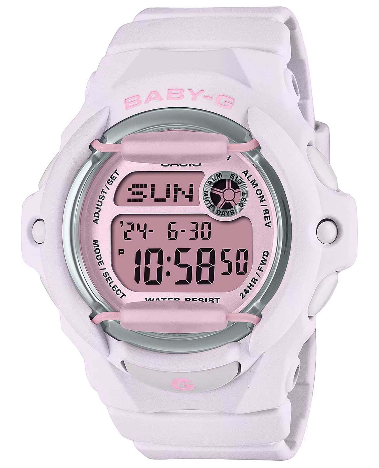 ПротивоударныеУдаропрочный корпусМеханизм заключён в корпус, выполненный из современных материалов, устойчивых к ударам, механическим повреждениям и падению с высоты: инновационный пластик, карбон, нержавеющая сталь, титан. кварцевые женские наручные часы Casio BG-169U-4B коллекции Baby-G с цифровой индикацией времени. Функциональность данной модели: формат времени 12/24, Мировое время Мировое время Полезное часовое усложнение, отображающее время в основных городах и известных областях по всему миру, оно связано с часовыми поясами, удобно для путешественников и бизнесменов. 30 городов (29 часовых поясов), записная книжка телефонных номеров (25 записей), режим отсчета дней до контрольной даты, вечный календарь до 2099 года, функция летнего времени (DST), 5 независимых будильников, сигнал начала часа, секундомерСекундомерСекундоме́р — прибор, способный измерять интервалы времени с точностью до долей секунды. с точностью 1/100 секунды и измерением до 23 часов 59 минут 59,99 cек., таймерТаймерОтсчитывает секунды в обратном направлении в заданном интервале времени. обратного отсчета (диапазон времени 24 часа), диодная подсветка циферблата с функцией послесвечения, функция выключения звука нажатия кнопок (Mute).