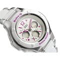 Японские женские часы-хронографХронографФункция позволяет измерять отрезки времени с особой точностью: часы, минуты, секунды. Верным признаком хронографа является наличие на циферблате 3 дополнительных окошек-счётчиков. Casio Baby-G BGA-120C-7B2 из коллекции Baby-G. Серия, которая выражает спортивность и цвет, которые являются основой бренда Baby-G. Минеральное стеклоМинеральное стеклоМинеральное стекло представляет собой искусственно выращенный минерал кварца. Такое стекло отличается особой устойчивостью к повреждениям и царапинам. Уступает по некоторым качествам сапфировому стеклу. устойчивое к появлению царапин, обладающее высокой прозрачностью. Корпус часов изготовлен из стали с пластиком. Функции: автоматическая светодиодная подсветка.Необритовое покрытиеПодсветка NeobriteИспользование светонакопительных составов на основе сульфида цинка или алюмината стронция, яркий свет можно наблюдать на протяжении 6-10 часов после «зарядки» часов около источника света. продолжает светиться в темноте даже после непродолжительного пребывания на свету.Ударопрочный корпусУдаропрочный корпусМеханизм заключён в корпус, выполненный из современных материалов, устойчивых к ударам, механическим повреждениям и падению с высоты: инновационный пластик, карбон, нержавеющая сталь, титан. защищает механизм от ударов и вибрации. Функция Мирового времениМировое время Полезное часовое усложнение, отображающее время в основных городах и известных областях по всему миру, оно связано с часовыми поясами, удобно для путешественников и бизнесменов. . СекундомерСекундомерСекундоме́р — прибор, способный измерять интервалы времени с точностью до долей секунды. с точностью измерения 1/100 секунды и измерением до 23 часов 59 минут 59,99 cек. ТаймерТаймерОтсчитывает секунды в обратном направлении в заданном интервале времени. обратного отсчета (диапазон времени 24 часа), автоматический календарь, 12/24 отображение времени. 5 ежедневных будильниковБудильникБуди́льник — часы, в заданный момент времени подающие звуковой, световой и/или в редких случаях другой сигнал.. Класс водозащиты: 100 метров, позволит плавать без погружения. Браслет из стали с пластиковыми вставками на раскладной застёжкеРаскладная застёжкаТакой тип застёжки используется только на браслетах из металла. Она никогда не раскрывается полностью, происходит разделение на 2 и более частей. Раскладывающая застёжка снизит вероятность потери часов к минимуму..