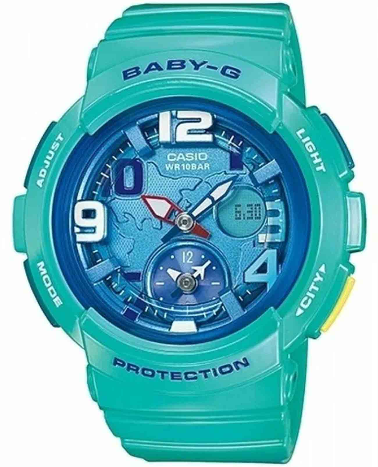 Женские противоударные японские наручные часы Casio Baby-G BGA-190-3B, кварцевый механизм с высокой точностью. Класс водозащиты: 100 метров, позволит плавать, нырять и заниматься другими водными видами спорта. Корпус часов изготовлен из пластика, цвета.