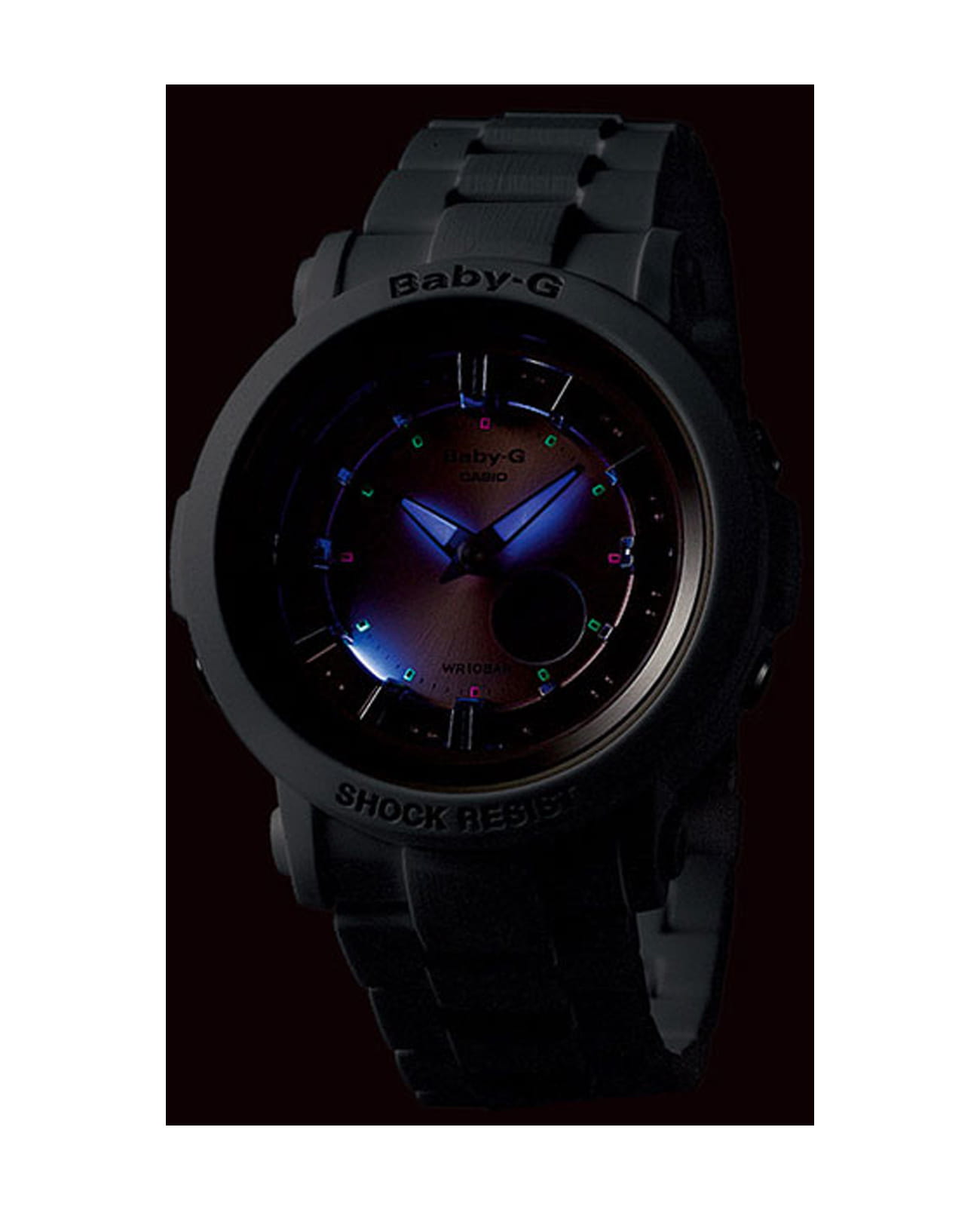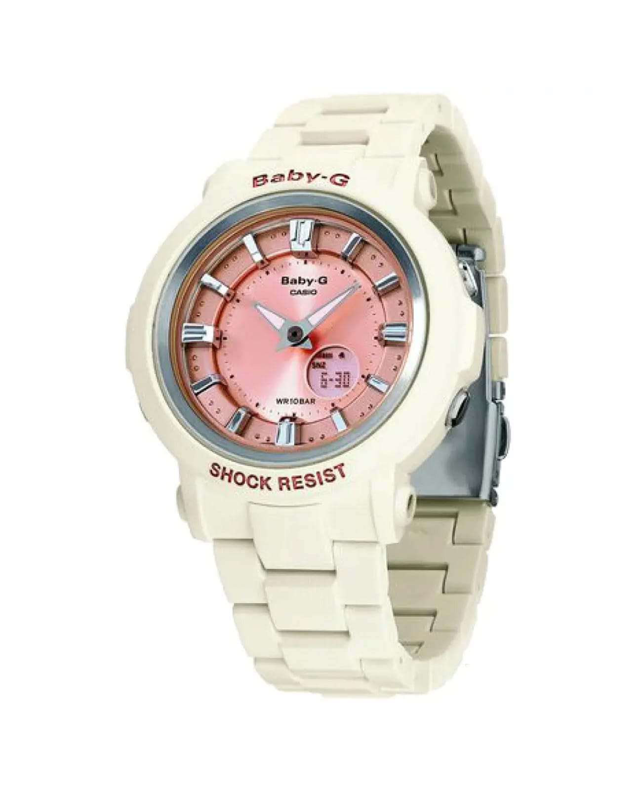 Японские женские часы Casio Baby-G BGA-300-7A2DR из коллекции Baby-G. Серия, которая выражает спортивность и цвет, которые являются основой бренда Baby-G. Минеральное стеклоМинеральное стеклоМинеральное стекло представляет собой искусственно выращенный минерал кварца. Такое стекло отличается особой устойчивостью к повреждениям и царапинам. Уступает по некоторым качествам сапфировому стеклу. устойчивое к появлению царапин, обладающее высокой прозрачностью. Корпус часов изготовлен из пластика. Ударопрочный корпусУдаропрочный корпусМеханизм заключён в корпус, выполненный из современных материалов, устойчивых к ударам, механическим повреждениям и падению с высоты: инновационный пластик, карбон, нержавеющая сталь, титан. защищает механизм от ударов и вибрации. Циферблат подсвечивается подсветкой Neon IlluminatorNeon IlluminatorУникальная подсветка циферблата. На индексы наносятся специальные флуоресцентные чернила, которые подсвечиваются светодиодной подсветкой. , благодаря наличию функции задержки, после отпускания кнопки освещение горит еще несколько секунд. Функция Мирового времениМировое время Полезное часовое усложнение, отображающее время в основных городах и известных областях по всему миру, оно связано с часовыми поясами, удобно для путешественников и бизнесменов. . СекундомерСекундомерСекундоме́р — прибор, способный измерять интервалы времени с точностью до долей секунды. с точностью измерения 1/100 секунды и измерением до 23 часов 59 минут 59,99 cек. ТаймерТаймерОтсчитывает секунды в обратном направлении в заданном интервале времени. после каждой пройденной минуты издается звуковой сигнал, в течении последних 10 секунд сигнал издается каждую секунду, автоматический календарь, 12/24 отображение времени. 5 ежедневных будильниковБудильникБуди́льник — часы, в заданный момент времени подающие звуковой, световой и/или в редких случаях другой сигнал.. Класс водозащиты: 100 метров, позволит плавать без погружения. Браслет из полимерного материала на раскладной застёжкеРаскладная застёжкаТакой тип застёжки используется только на браслетах из металла. Она никогда не раскрывается полностью, происходит разделение на 2 и более частей. Раскладывающая застёжка снизит вероятность потери часов к минимуму..
