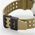 Необычная модель бюджетного ценового сегмента отличается внушительным внешним видом с красными и золотистыми деталями, круглое окошко напоминает снайперский прицел, мощные выступы защищают кнопки. Ключевой особенностью аксессуара стала батарейка, рассчитанная на 10 лет безупречной работы. Корпус и ремешок из полимерного пластика. Светодиодная подсветкаСветодиодная подсветкаСветодиодная или LED-подсветка обеспечивает появление яркого холодного свечения за счёт LED-элементов - маленьких лампочек. Они потребляют минимальное количество энергии, чаще всего можно встретить 1 светодиод, в нижней части циферблата. дисплея. Минеральное стеклоМинеральное стеклоМинеральное стекло представляет собой искусственно выращенный минерал кварца. Такое стекло отличается особой устойчивостью к повреждениям и царапинам. Уступает по некоторым качествам сапфировому стеклу. устойчивое к мелким механическим повреждениям. Водонепроницаемость 200 метров, позволит плавать, нырять и заниматься другими водными видами спорта. ТаймерТаймерОтсчитывает секунды в обратном направлении в заданном интервале времени. обратного отсчёта, будильник, ежечасный сигнал, хронографХронографФункция позволяет измерять отрезки времени с особой точностью: часы, минуты, секунды. Верным признаком хронографа является наличие на циферблате 3 дополнительных окошек-счётчиков., секундомерСекундомерСекундоме́р — прибор, способный измерять интервалы времени с точностью до долей секунды., мировое времяМировое время Полезное часовое усложнение, отображающее время в основных городах и известных областях по всему миру, оно связано с часовыми поясами, удобно для путешественников и бизнесменов. - 49 городов, автоматический календарь. Габариты: 50,4 x 50,5 x 13,5 мм.
