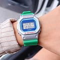 Стильные часы Casio G-Shock DW-5600EU-8A3, идеально подходят для тех, кто предпочитает спортивный стиль, но при этом остается в тренде. Ударопрочный корпусУдаропрочный корпусМеханизм заключён в корпус, выполненный из современных материалов, устойчивых к ударам, механическим повреждениям и падению с высоты: инновационный пластик, карбон, нержавеющая сталь, титан. защищает механизм от ударов и вибрации. Циферблат подсвечивается светодиодомСветодиодная подсветкаСветодиодная или LED-подсветка обеспечивает появление яркого холодного свечения за счёт LED-элементов - маленьких лампочек. Они потребляют минимальное количество энергии, чаще всего можно встретить 1 светодиод, в нижней части циферблата.. Послесвечение. Цвет подсветки: белый. Световая индикация сигнала. Типы сигналов: ежедневный, ежемесячный, каждый день определенного месяца, на определенную дату. 12-ти и 24-х часовой формат времени. СекундомерСекундомерСекундоме́р — прибор, способный измерять интервалы времени с точностью до долей секунды. с двумя точностями показаний: 1/100с (до 1ч) и 1с (после 1ч) и временем измерения 24ч. Сплит-хронографСплит-хронографИспользуется для измерения продолжительности нескольких временных отрезков, начинающихся одновременно, а заканчивающихся в разное время.. ТаймерТаймерОтсчитывает секунды в обратном направлении в заданном интервале времени. обратного отсчета от 1с до 24ч с автоповтором. Батарейка рассчитана на 5 лет. БудильникБудильникБуди́льник — часы, в заданный момент времени подающие звуковой, световой и/или в редких случаях другой сигнал., ежечасный сигнал. Стальная задняя крышка крепится на 4-х винтах. Ремешок из полимерного материала на стандартной застежке.