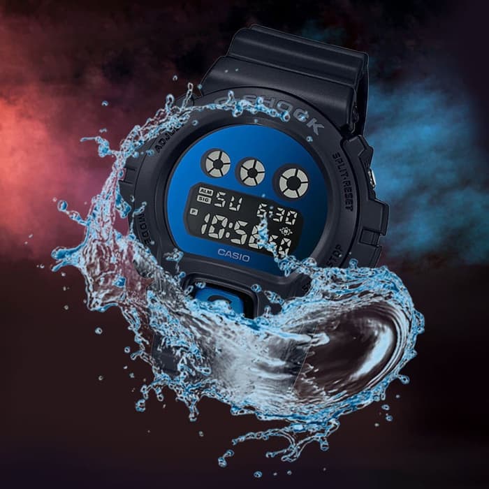 Мужские японские противоударные часы с хронографом Casio G-Shock DW-6900MMA-2E, электронный механизм с высокой точностью. Класс водозащиты: 200 метров, позволит плавать, нырять и заниматься другими водными видами спорта. Корпус часов изготовлен из пластика, цвета.