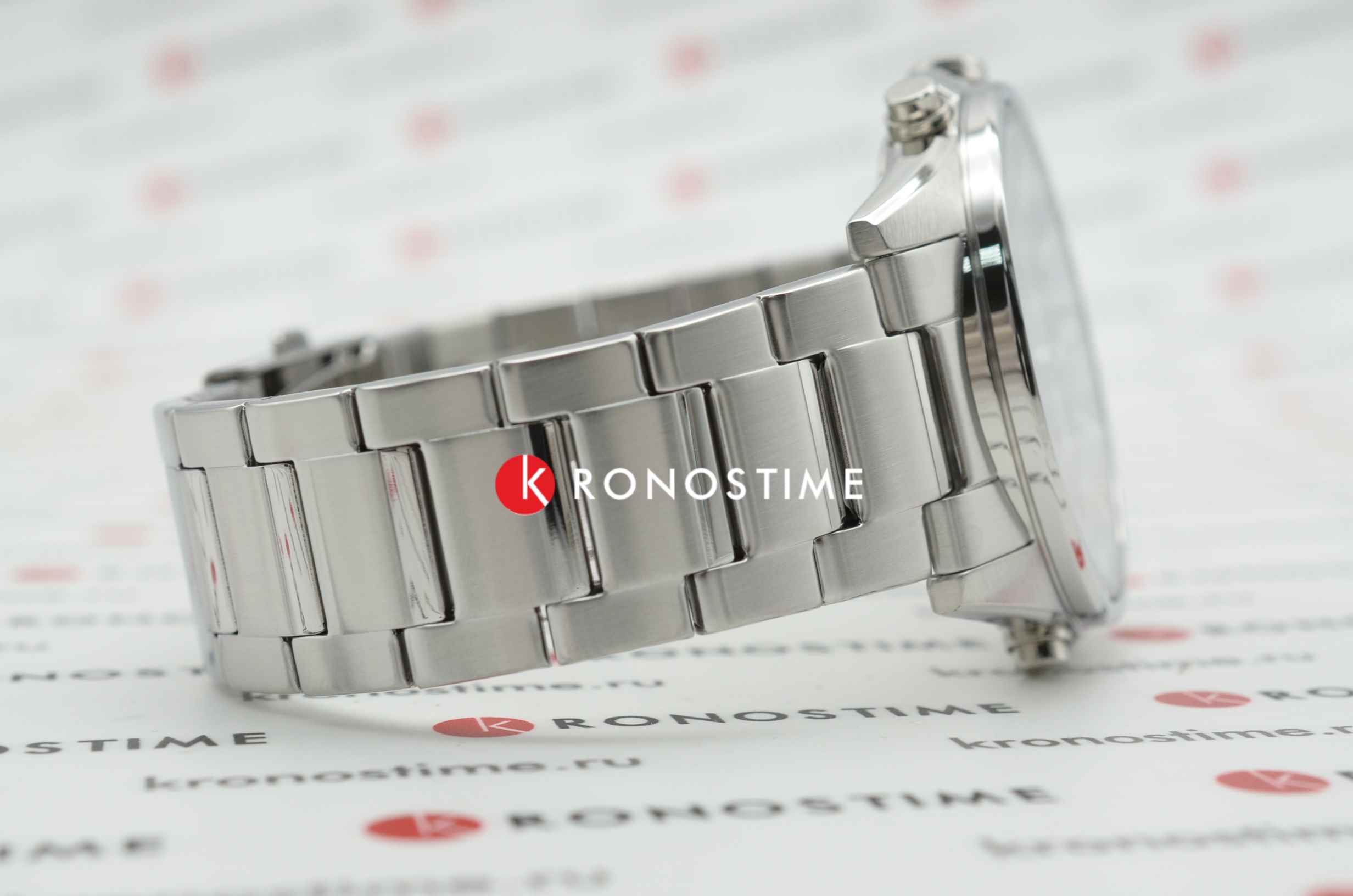 Достаточно внушительный синий циферблат с оригинальным расположением счётчиков. Многофункциональная модель пригодится на любой случай жизни, ведь она оснащена Bluetooth 4.0BluetoothСовременная технология, позволяющая синхронизировать часы с телефоном и переносить данные. Часы с Bluetooth расширяют возможности вашего смартфона и делают его использование ещё более удобным., хронографомХронографФункция позволяет измерять отрезки времени с особой точностью: часы, минуты, секунды. Верным признаком хронографа является наличие на циферблате 3 дополнительных окошек-счётчиков., секундомером, тахиметромТахиметрРазмеченная шкала, располагается на ободке или безеле часов. Тахиметр позволяет рассчитать скорость на определённом участке пути, расстояние измеряется в километрах или милях., таймером, будильником, календарём, есть мировое времяМировое время Полезное часовое усложнение, отображающее время в основных городах и известных областях по всему миру, оно связано с часовыми поясами, удобно для путешественников и бизнесменов. и функция поиска телефона. Питание поступает от солнечной энергии - . Водонепроницаемость до 10 бар. Корпус, браслет, безельБезельВнешний ободок, закрепляющий стекло. В спортивных часах так называется поворотное кольцо с делениями на циферблате, выполняет роль таймера – замеряет отрезки времени на шкале. Неподвижный безель – элемент декора. Однонаправленно вращающийся безель на дайверских часах позволяет фиксировать моменты погружения и выныривания на поверхность. из нержавеющей стали. Минеральное стекло. Двойная светодиодная подсветкаСветодиодная подсветкаСветодиодная или LED-подсветка обеспечивает появление яркого холодного свечения за счёт LED-элементов - маленьких лампочек. Они потребляют минимальное количество энергии, чаще всего можно встретить 1 светодиод, в нижней части циферблата.. Габариты: 50 x 46 x 9,8 мм.