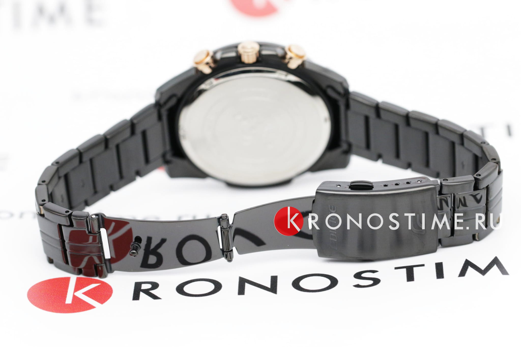 Японские мужские часы c хронографомХронографФункция позволяет измерять отрезки времени с особой точностью: часы, минуты, секунды. Верным признаком хронографа является наличие на циферблате 3 дополнительных окошек-счётчиков. Casio Edifice EFR-559DC-1A, кварцевый механизм с высокой точностью. Класс водозащиты: 100 метров, позволит плавать, нырять и заниматься другими водными видами спорта. Корпус часов изготовлен из стали с IP-покрытиемIP-покрытиеМетод ионного напыления. Демонстрирует повышенную устойчивость к истиранию, окислению и химическим веществам. Под воздействием высокого давления и температуры около 1500°C молекулы металла надёжно соединяются с частицами корпуса часов. черного цвета. Стрелки и метки с люминесцентным покрытиемЛюминесцентное покрытиеПозволяет считывать показания времени в темноте. Производители наносят на стрелки, часовые индексы, безель или поверхность циферблата светонакопительный состав, дающий холодное свечение.. Минеральное стеклоМинеральное стеклоМинеральное стекло представляет собой искусственно выращенный минерал кварца. Такое стекло отличается особой устойчивостью к повреждениям и царапинам. Уступает по некоторым качествам сапфировому стеклу.. Завинчивающаяся задняя крышка. Заводная головка с защитой. Браслет выполнен из нержавеющей стали с IP-покрытиемIP-покрытиеМетод ионного напыления. Демонстрирует повышенную устойчивость к истиранию, окислению и химическим веществам. Под воздействием высокого давления и температуры около 1500°C молекулы металла надёжно соединяются с частицами корпуса часов..