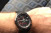 Наручные часы в чёрном исполнении привлекают красными деталями и лаконичным оформлением. Помогут идеально дополнить образ на каждый день. Аксессуар стал обладателем ультратонкого корпуса, по сравнению с большинством представителей Edifice – 9,9 мм. Модель изготовлена из стали 316L с ионным IP-покрытиемIP-покрытиеМетод ионного напыления. Демонстрирует повышенную устойчивость к истиранию, окислению и химическим веществам. Под воздействием высокого давления и температуры около 1500°C молекулы металла надёжно соединяются с частицами корпуса часов., материал устойчив к коррозии и механическим воздействиям. Японский кварцевый механизм обеспечивает питанием солнечная батарейка . Указатель минутной стрелки хронографаХронографФункция позволяет измерять отрезки времени с особой точностью: часы, минуты, секунды. Верным признаком хронографа является наличие на циферблате 3 дополнительных окошек-счётчиков. на секторной части циферблата. Сапфировое стекло с антибликовым покрытием. Водостойкость 100 метров. Люминесцентная подсветкаЛюминесцентное покрытиеПозволяет считывать показания времени в темноте. Производители наносят на стрелки, часовые индексы, безель или поверхность циферблата светонакопительный состав, дающий холодное свечение.. Застёжка с системой блокировки. Секундомер, отображение числа. Габариты: 50,2 x 45,4 x 9,9 мм.