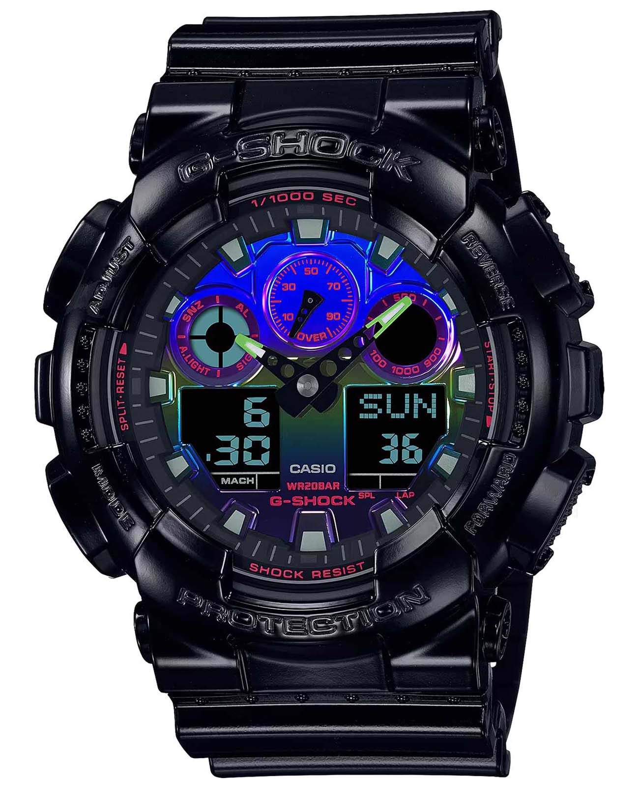 Японские мужские часы Casio G-Shock GA-100RGB-1ADR (GA-100RGB-1A) с хронографом