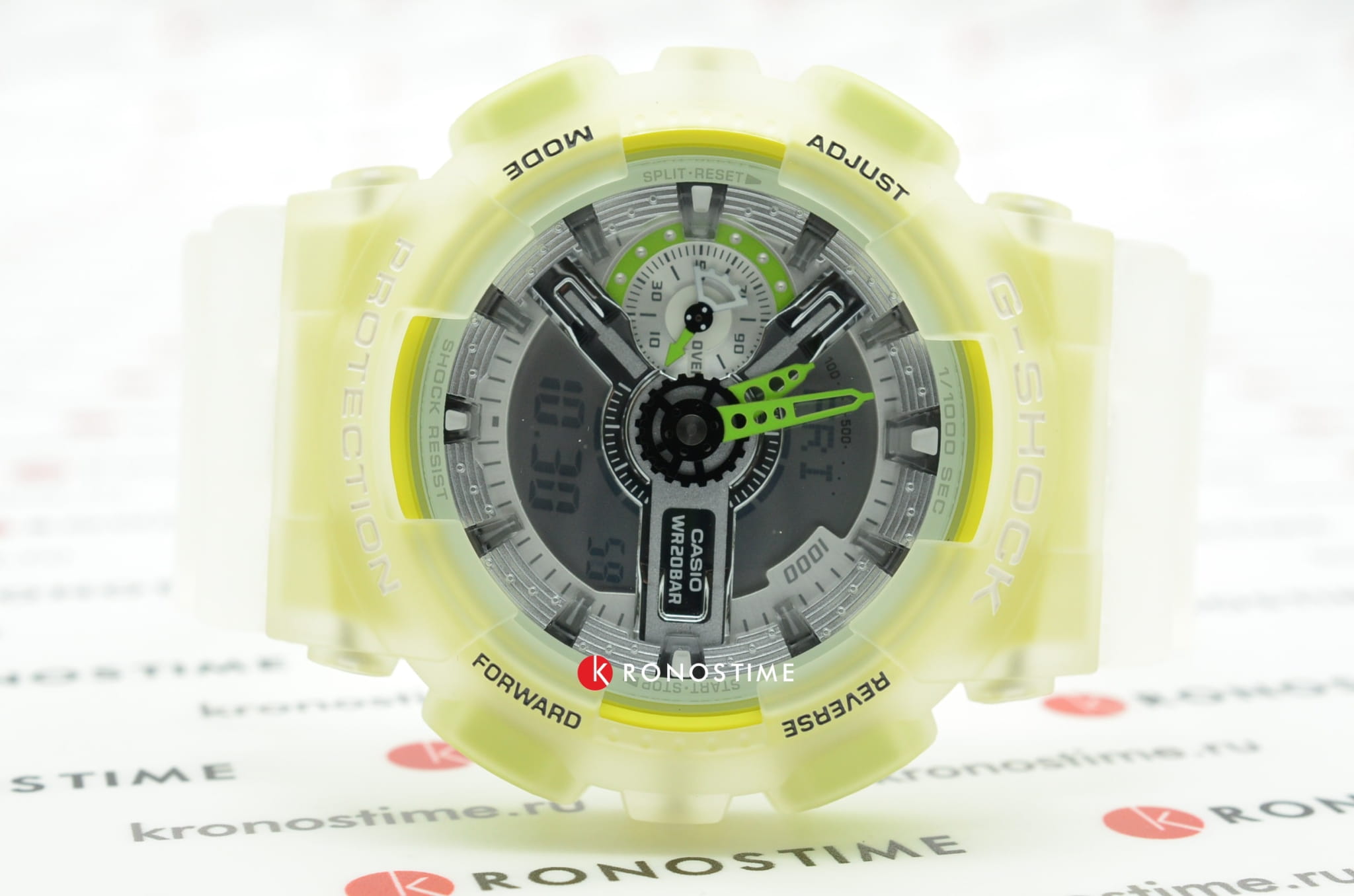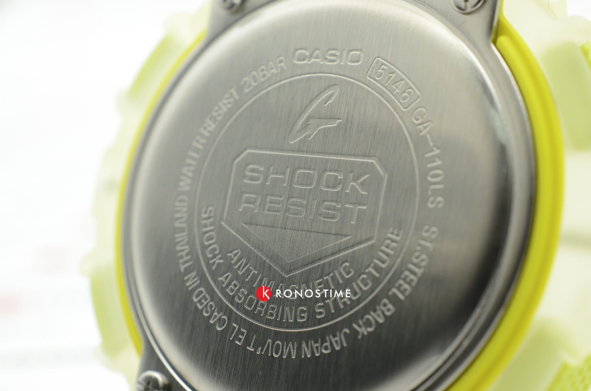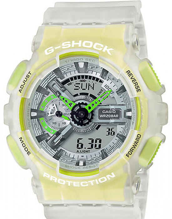 Японские мужские часы GA-110LS-7AER из коллекции G-Shock представлены в спортивном облачении, но их лаймовый оттенок позволяет продемонстрировать изысканную натуру.