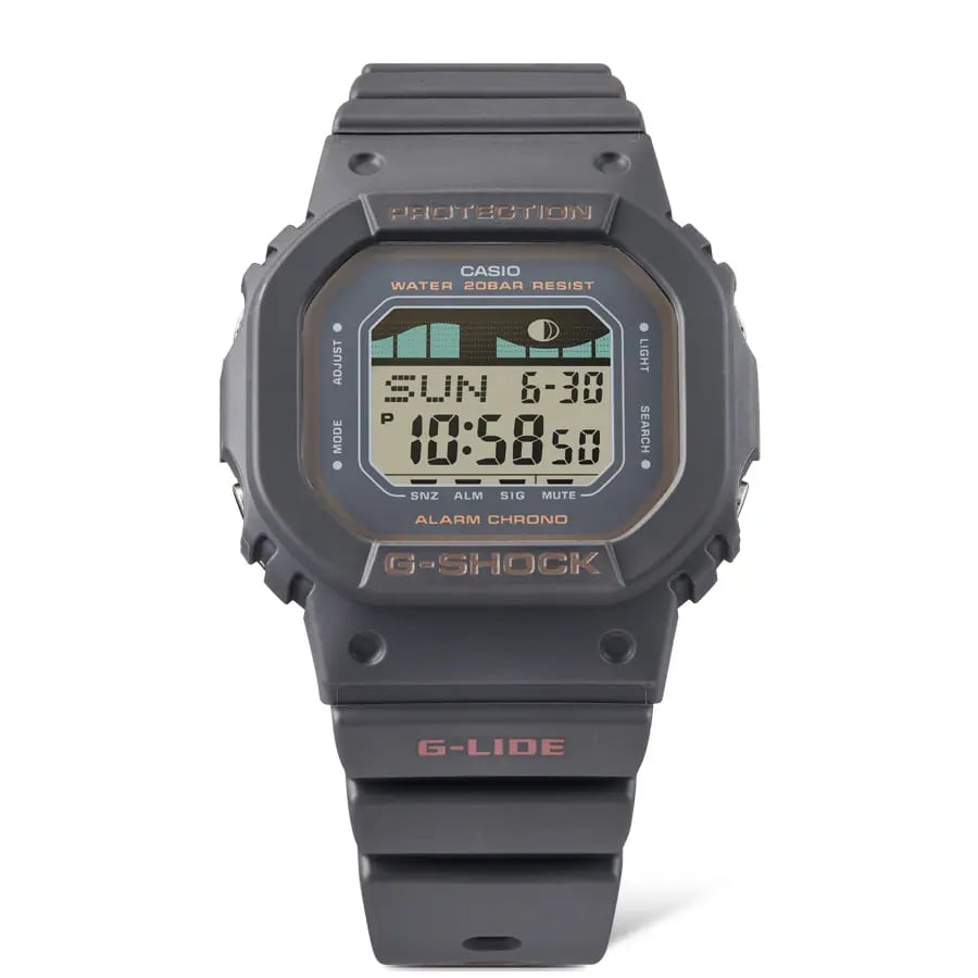 Японские мужские часы-хронографХронографФункция позволяет измерять отрезки времени с особой точностью: часы, минуты, секунды. Верным признаком хронографа является наличие на циферблате 3 дополнительных окошек-счётчиков. Casio G-Shock GLX-S5600-1 из коллекции G-Shock. Винтажная модель в новой цветовой гамме корпуса и ремешка понравится поклонникам серфинга. G-Lide. Модель часов создана на базе GLX-5600. Минеральное стеклоМинеральное стеклоМинеральное стекло представляет собой искусственно выращенный минерал кварца. Такое стекло отличается особой устойчивостью к повреждениям и царапинам. Уступает по некоторым качествам сапфировому стеклу. устойчивое к появлению царапин, обладающее высокой прозрачностью. Ударопрочный корпусУдаропрочный корпусМеханизм заключён в корпус, выполненный из современных материалов, устойчивых к ударам, механическим повреждениям и падению с высоты: инновационный пластик, карбон, нержавеющая сталь, титан. защищает механизм от ударов и вибрации. Электролюминесцентная подсветкаЭлектролюминесцентная подсветкаЭлектролюминесцентная панель устанавливается под ЖК-экраном часов, при нажатии кнопки электричество преобразуется в свет за счёт подачи напряжения на атомы фосфора, такой тип подсветки позволяет освещать весь циферблат. освещает весь циферблат. Мировое времяМировое время Полезное часовое усложнение, отображающее время в основных городах и известных областях по всему миру, оно связано с часовыми поясами, удобно для путешественников и бизнесменов. – 48 городов (29 часовых поясов). СекундомерСекундомерСекундоме́р — прибор, способный измерять интервалы времени с точностью до долей секунды. с точностью измерения 1/100 секунды и измерением до 23 часов 59 минут 59,99 cек. ТаймерТаймерОтсчитывает секунды в обратном направлении в заданном интервале времени. обратного отсчета (диапазон времени 24 часа), автоматический календарь, 12/24 отображение времени. 3 будильникаБудильникБуди́льник — часы, в заданный момент времени подающие звуковой, световой и/или в редких случаях другой сигнал., один с функцией Snooze, ежечасный сигнал. Отображение возраста и фазы Луны. Графическое отображение сведений о приливах и отливах на заданную дату и время. Класс водозащиты: 200 метров, позволит плавать, нырять и заниматься другими водными видами спорта. Ремешок из полимерного материала на стандартной застежке.