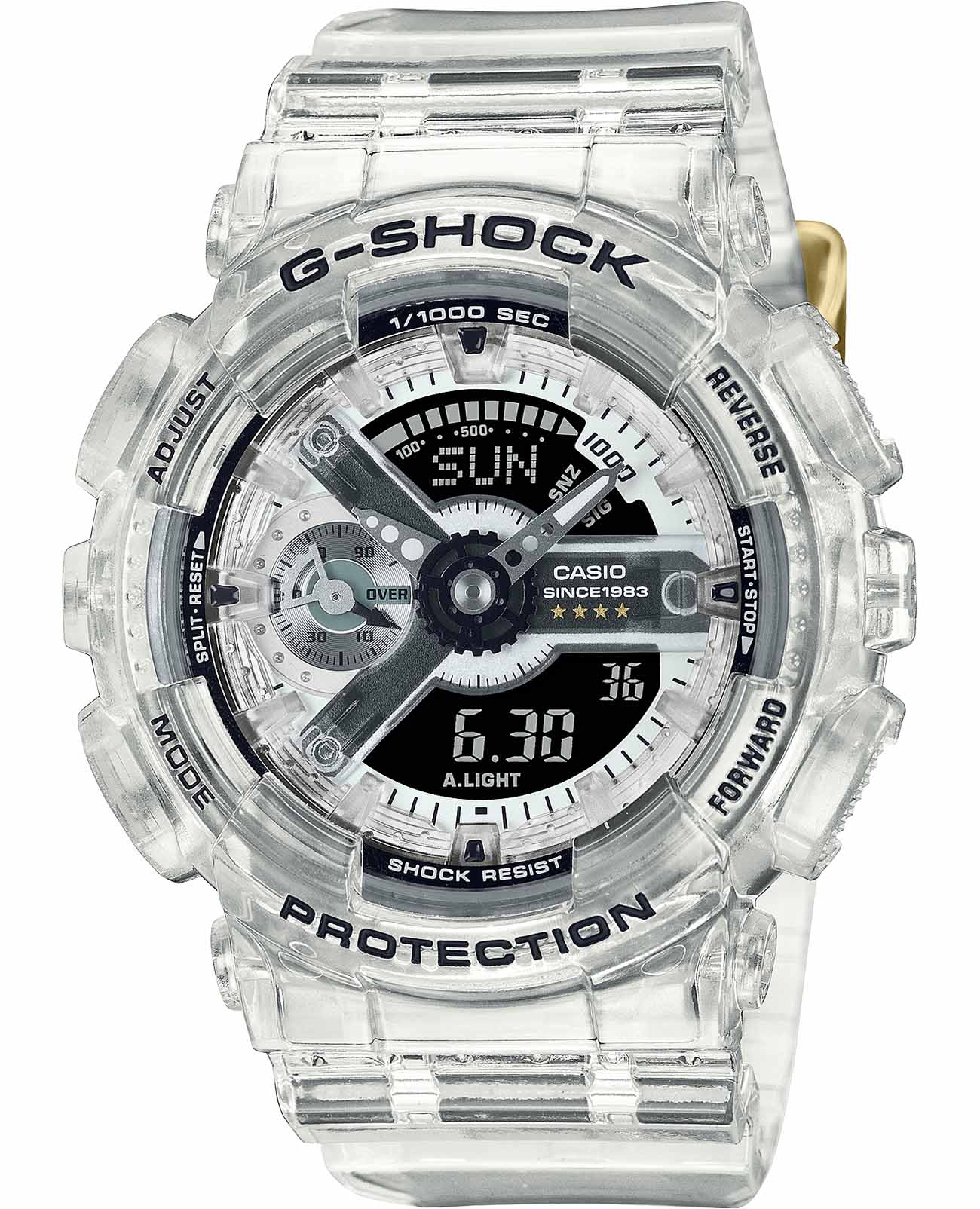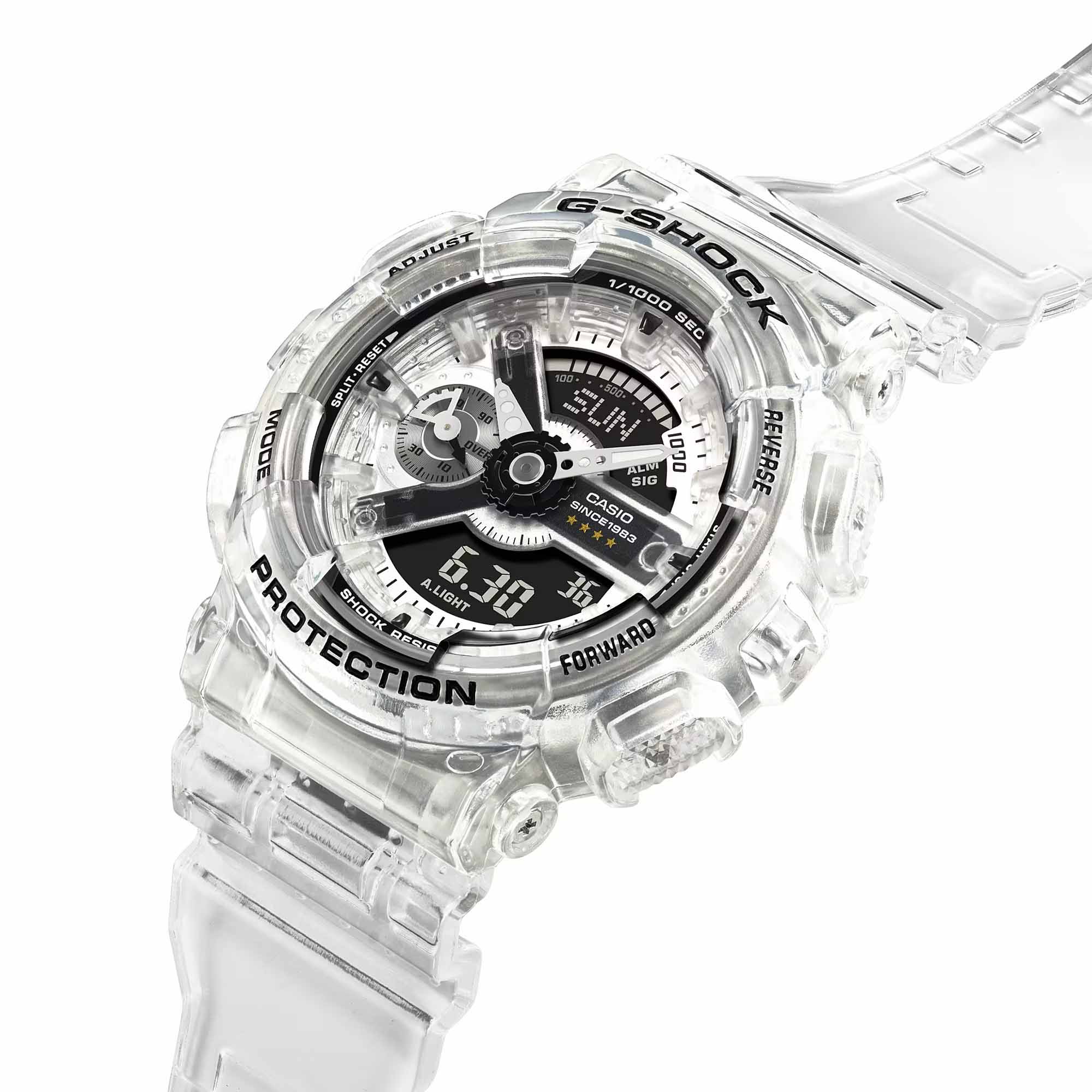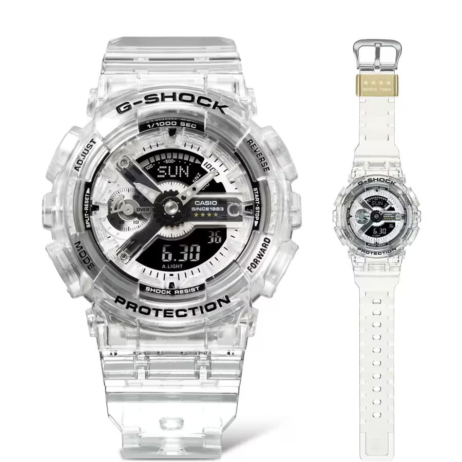 Массивные противоударные часы, выпущенные ограниченным тиражом, оценят поклонники уникальных аксессуаров. G-Shock 40th Anniversary Clear Remix. Лимитированная серия посвящена 40-летию G-SHOCK. Противоударный корпус защищает механизм от ударов и вибрации. Защищены от магнитных полей. Светодиодная автоподсветка - при повороте часов в сторону лица подсветка дисплея осуществляется автоматически. Настраиваемое послесвечение 1,5 или 3сек. Цвет подсветки: оранжевый. Необритовое светонакопительное покрытие обеспечивает длительное послесвечение в темноте даже после кратковременного нахождения на свету.