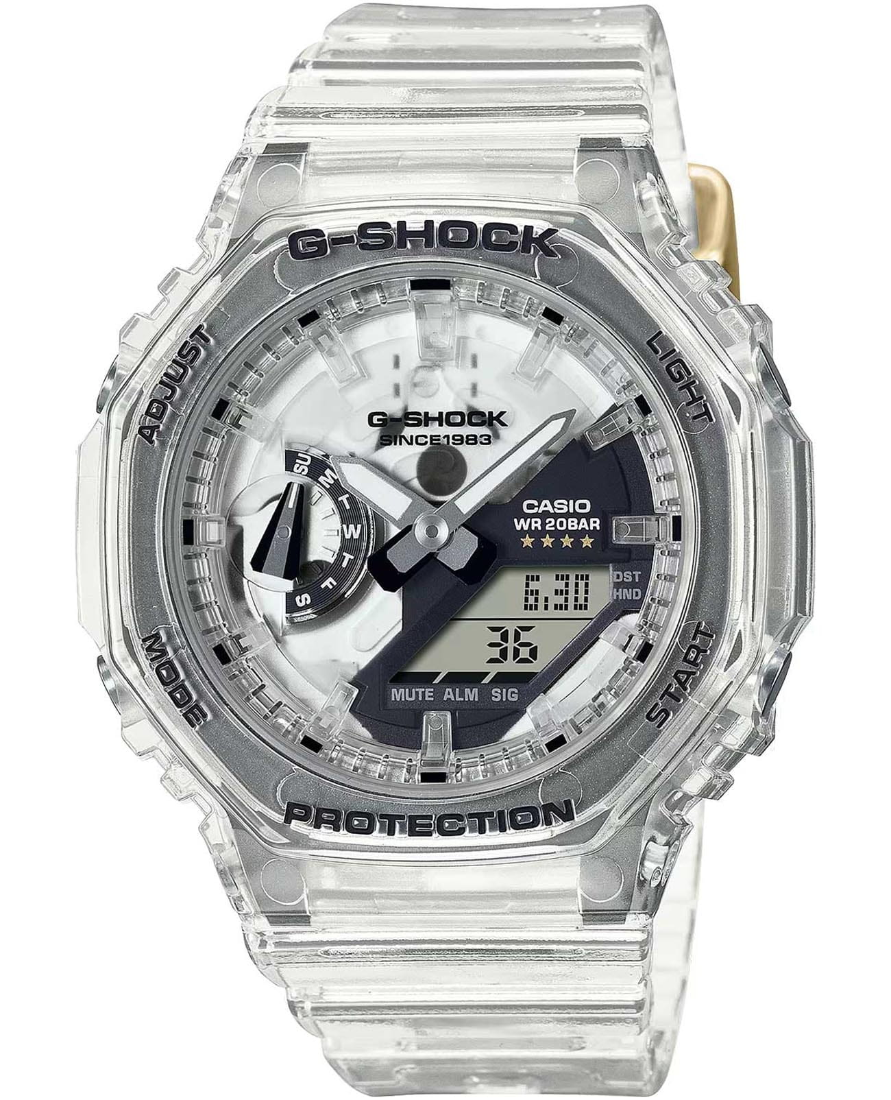 Лимитированные японские наручные часы Casio G-Shock GMA-S2140RX-7A. Ударопрочный корпус часов изготовлен из полимера. Силиконовый ремешок на стандартной застёжке. Электролюминесцентная подсветкаЭлектролюминесцентная подсветкаЭлектролюминесцентная панель устанавливается под ЖК-экраном часов, при нажатии кнопки электричество преобразуется в свет за счёт подачи напряжения на атомы фосфора, такой тип подсветки позволяет освещать весь циферблат. освещает весь циферблат, после отпускания кнопки свечение продолжается еще некоторое время. Минеральное стеклоМинеральное стеклоМинеральное стекло представляет собой искусственно выращенный минерал кварца. Такое стекло отличается особой устойчивостью к повреждениям и царапинам. Уступает по некоторым качествам сапфировому стеклу., устойчивое к мелким механическим повреждениям. БудильникБудильникБуди́льник — часы, в заданный момент времени подающие звуковой, световой и/или в редких случаях другой сигнал., таймерТаймерОтсчитывает секунды в обратном направлении в заданном интервале времени., хронографХронографФункция позволяет измерять отрезки времени с особой точностью: часы, минуты, секунды. Верным признаком хронографа является наличие на циферблате 3 дополнительных окошек-счётчиков., вечный календарьВечный календарьКлассическое часовое усложнение, представляющее собой календарь, рассчитанный на несколько лет вперёд (стандартно – до 2099 года). Определяет текущую дату, день недели, месяц.. Класс водозащиты: 200 метров, позволит плавать, нырять и заниматься другими водными видами спорта.