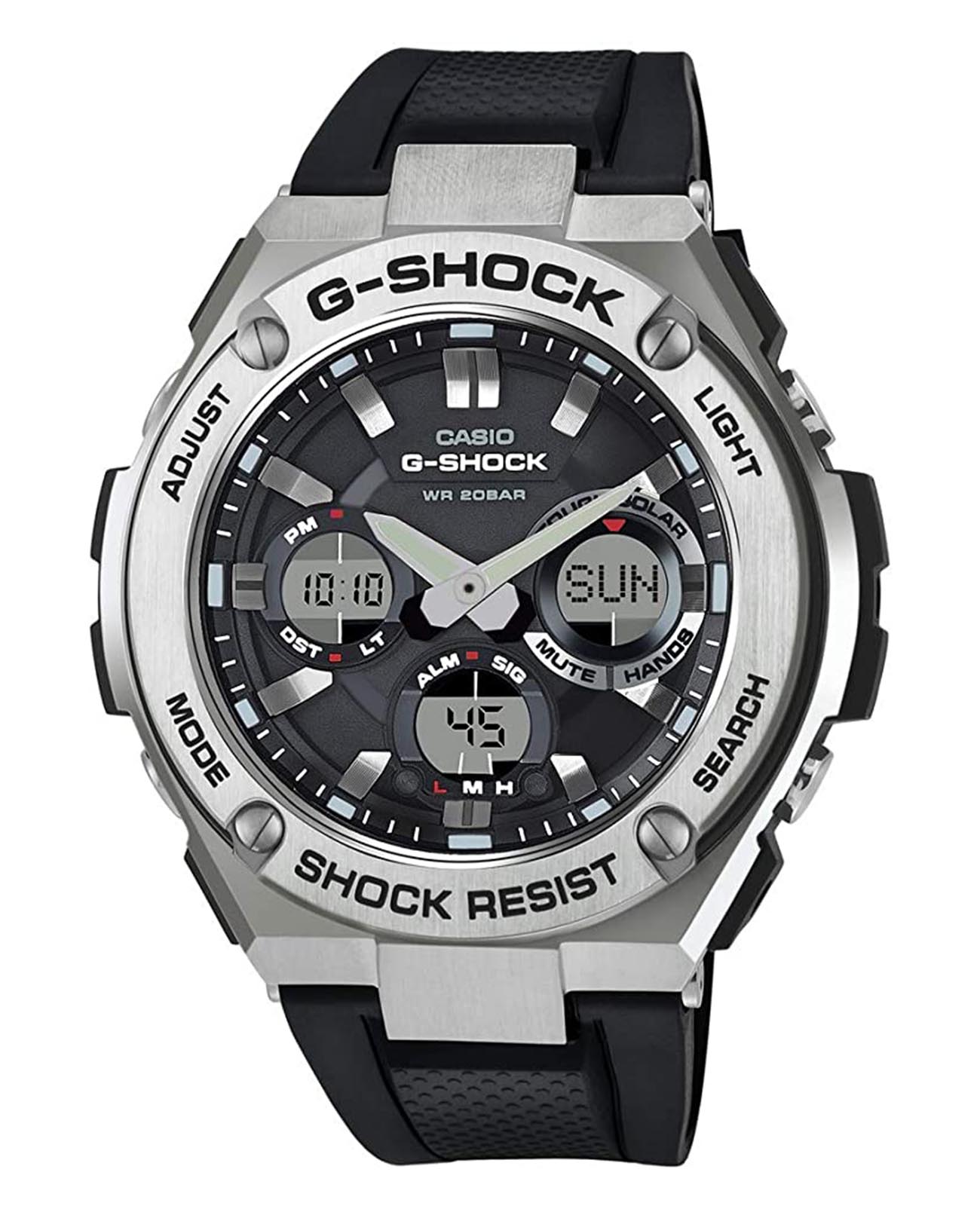 Противоударные, спортивные мужские часы в серии G-STEEL в стальном корпусе Casio G-Shock GST-S110-1ADR (GST-S110-1A), электронный механизм с высокой точностью. Класс водозащиты: 200 метров, позволит плавать, нырять и заниматься другими водными видами спорта. Корпус часов изготовлен из стали, разноцветного цвета.
