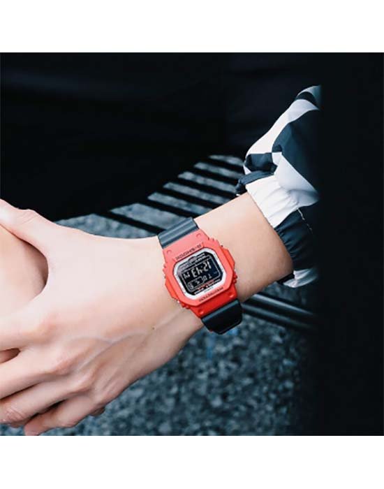Японские мужские часы GW-M5610RB-4ER из спортивной коллекции G-Shock отличаются узнаваемым дизайном, прототипом для которого стал внешний вид моделей 1983 года.