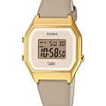 Японские женские часы-хронографХронографФункция позволяет измерять отрезки времени с особой точностью: часы, минуты, секунды. Верным признаком хронографа является наличие на циферблате 3 дополнительных окошек-счётчиков. с органическим стеклом Casio VintageLA680WEGL-5EF, кварцевый механизм с высокой точностью. Корпус часов изготовлен из пластика. СекундомерСекундомерСекундоме́р — прибор, способный измерять интервалы времени с точностью до долей секунды. с точностью измерения 1/100 секунды и измерением 1 ч. 12-ти и 24-х часовой формат времени. БудильникБудильникБуди́льник — часы, в заданный момент времени подающие звуковой, световой и/или в редких случаях другой сигнал., ежечасный сигнал. Автоматический календарь: число, день недели. Батарея рассчитана на 5 лет. Класс водозащиты: 30 метров, позволит защитить корпус от случайных брызг или капель дождя. Кожаный ремешок на стандартной застежке.