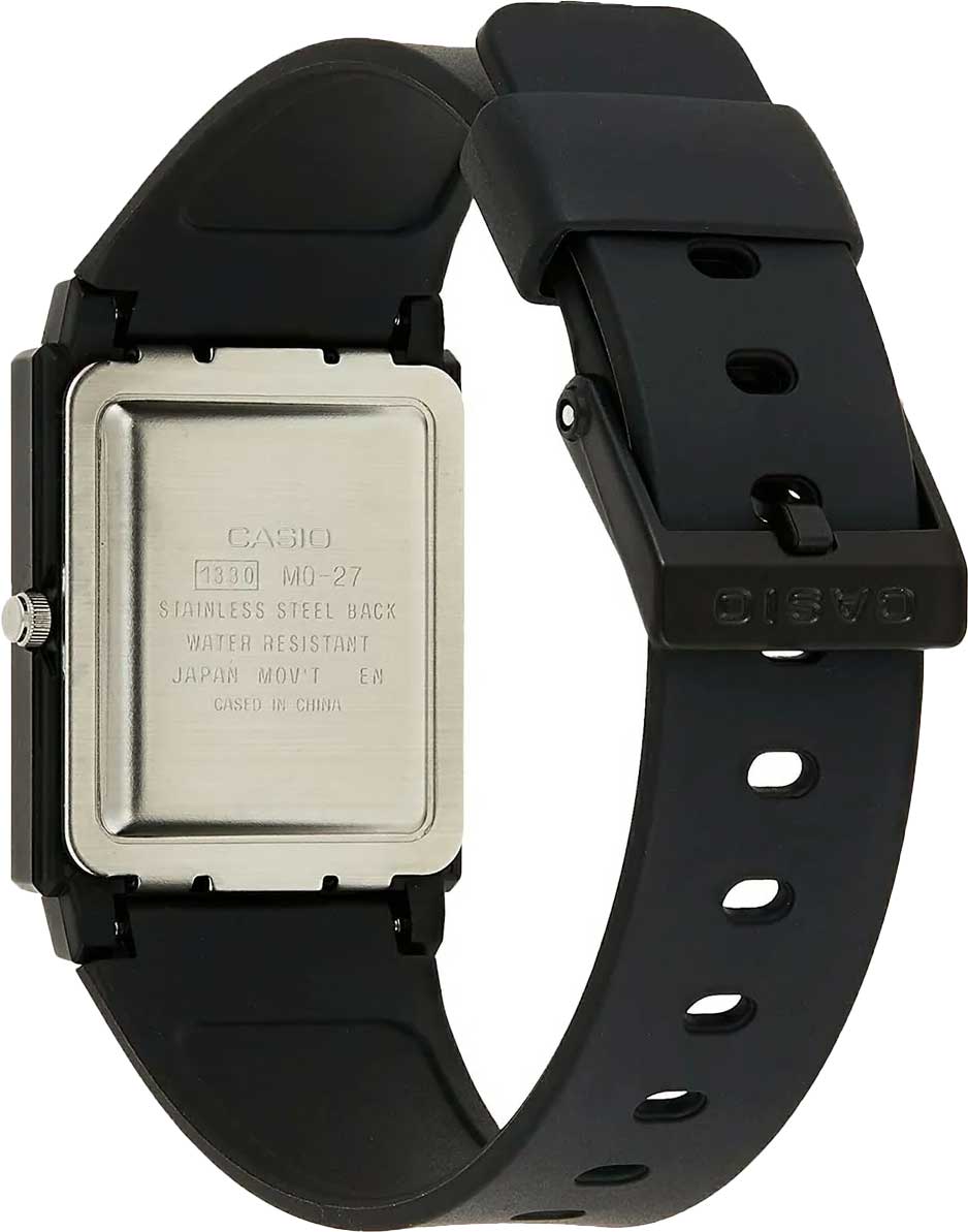 Спортивные японские мужские наручные часы Casio Collection MQ-27-7E, кварцевый механизм с высокой точностью. Класс водозащиты: 30 метров, позволит защитить корпус от случайных брызг или капель дождя. Корпус часов изготовлен из пластика. Пластиковый ремешок на стандартной застёжке. Часы, минуты, секунды.