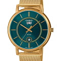 Японские мужские наручные часы Casio Collection MTP-B120MG-3A с минеральным стекломМинеральное стеклоМинеральное стекло представляет собой искусственно выращенный минерал кварца. Такое стекло отличается особой устойчивостью к повреждениям и царапинам. Уступает по некоторым качествам сапфировому стеклу., кварцевый механизм с высокой точностью. Класс водозащиты: 50 метров, позволит защитить корпус от случайных брызг или капель дождя. Корпус часов изготовлен из стали с IP-покрытиемIP-покрытиеМетод ионного напыления. Демонстрирует повышенную устойчивость к истиранию, окислению и химическим веществам. Под воздействием высокого давления и температуры около 1500°C молекулы металла надёжно соединяются с частицами корпуса часов..Стальной браслет миланского плетения на раскладном замкеРаскладной замокДанный вариант застежки используется только на часах с металлическим браслетом. Отличительная особенность такого крепления в том, что длина браслета становится универсальной и вы можете самостоятельно отрегулировать нужный вам размер – застежка просто двигается по браслету часов.. Указатель даты находится в положении 6 часов. Указатель дня недели находится в положении 12 часов. Батарея рассчитана на 3 года. Циферблат с метками в виде штрихов.