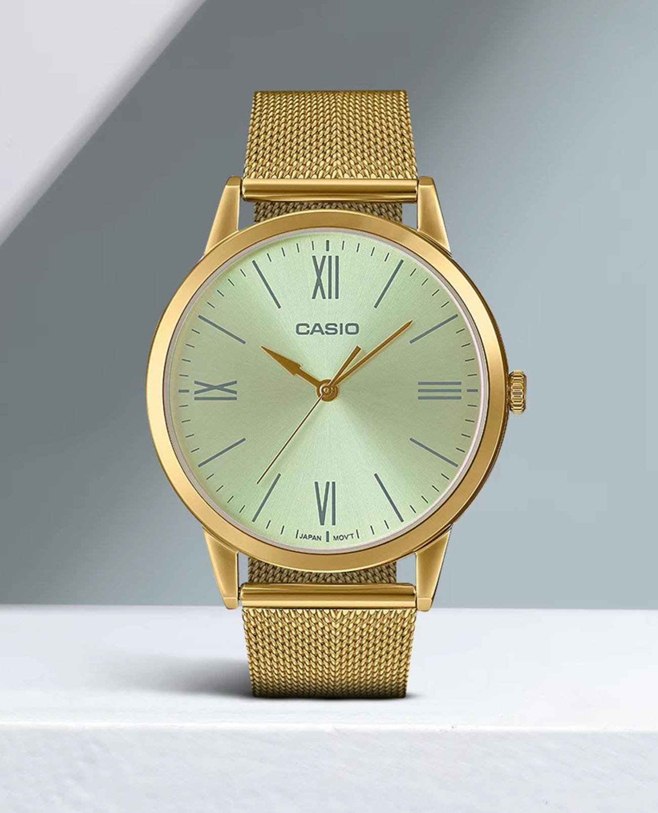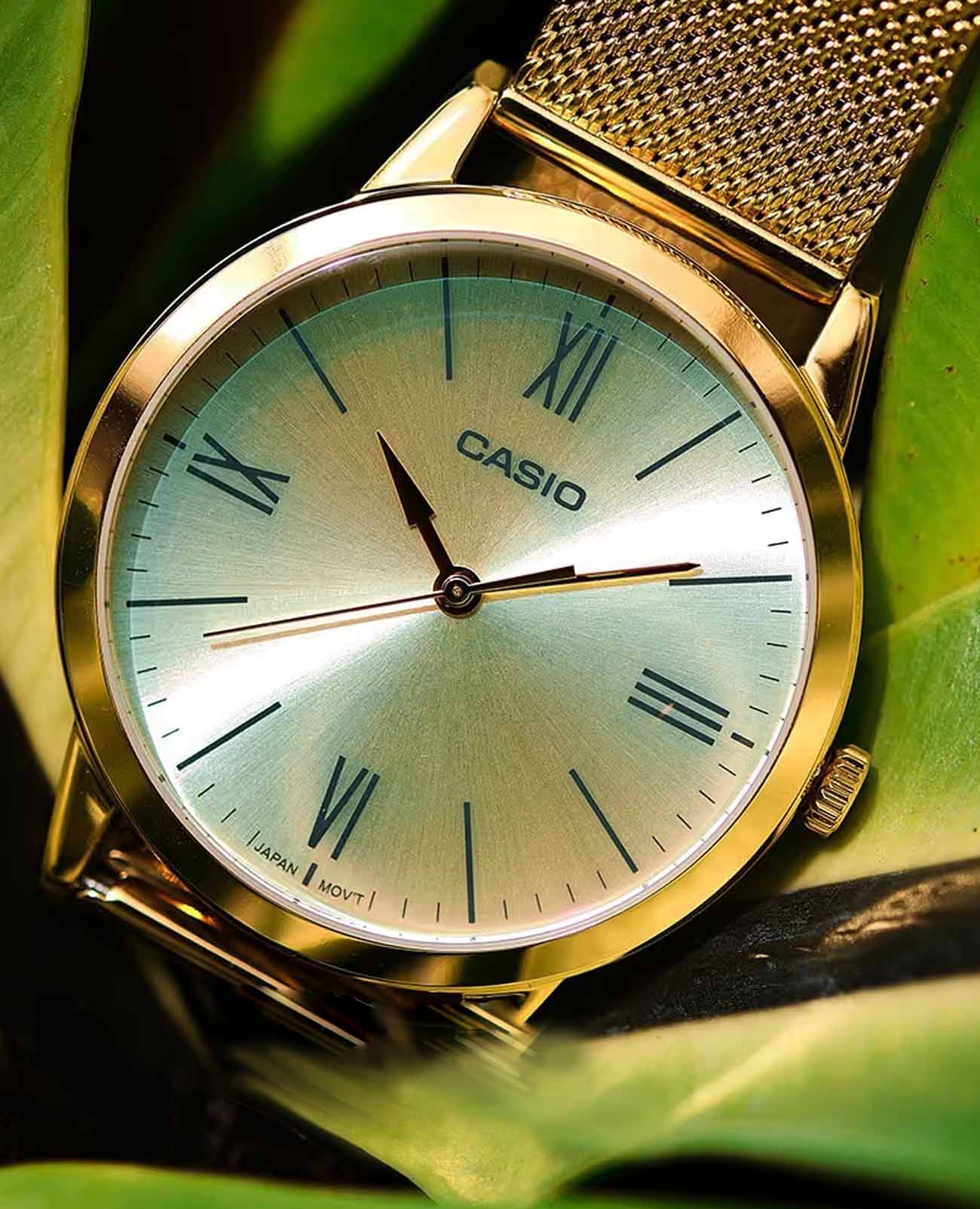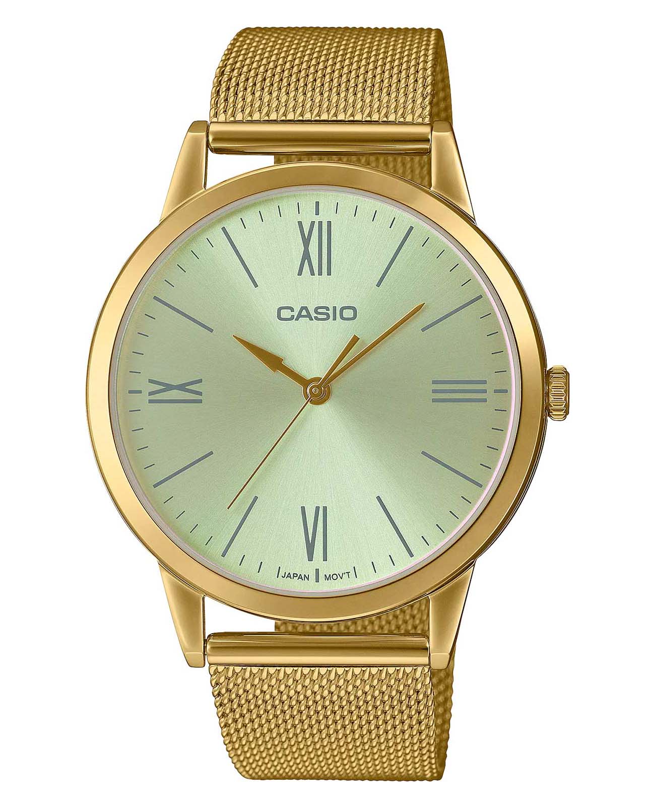 Японские мужские часы с минеральным стекломМинеральное стеклоМинеральное стекло представляет собой искусственно выращенный минерал кварца. Такое стекло отличается особой устойчивостью к повреждениям и царапинам. Уступает по некоторым качествам сапфировому стеклу. Casio Collection MTP-E600MG-9B, кварцевый механизм с высокой точностью. Корпус часов изготовлен из стали с IP-покрытиемIP-покрытиеМетод ионного напыления. Демонстрирует повышенную устойчивость к истиранию, окислению и химическим веществам. Под воздействием высокого давления и температуры около 1500°C молекулы металла надёжно соединяются с частицами корпуса часов.. Циферблат выполнен по технологии Sunray (солнечные лучи). Метки в виде штрихов и римских цифр. Батарея рассчитана на 3 года. Класс водозащиты: 50 метров, позволит защитить корпус от случайных брызг или капель дождя. Стальной браслет миланского плетения с IP-покрытиемIP-покрытиеМетод ионного напыления. Демонстрирует повышенную устойчивость к истиранию, окислению и химическим веществам. Под воздействием высокого давления и температуры около 1500°C молекулы металла надёжно соединяются с частицами корпуса часов. на раскладном замкеРаскладной замокДанный вариант застежки используется только на часах с металлическим браслетом. Отличительная особенность такого крепления в том, что длина браслета становится универсальной и вы можете самостоятельно отрегулировать нужный вам размер – застежка просто двигается по браслету часов..