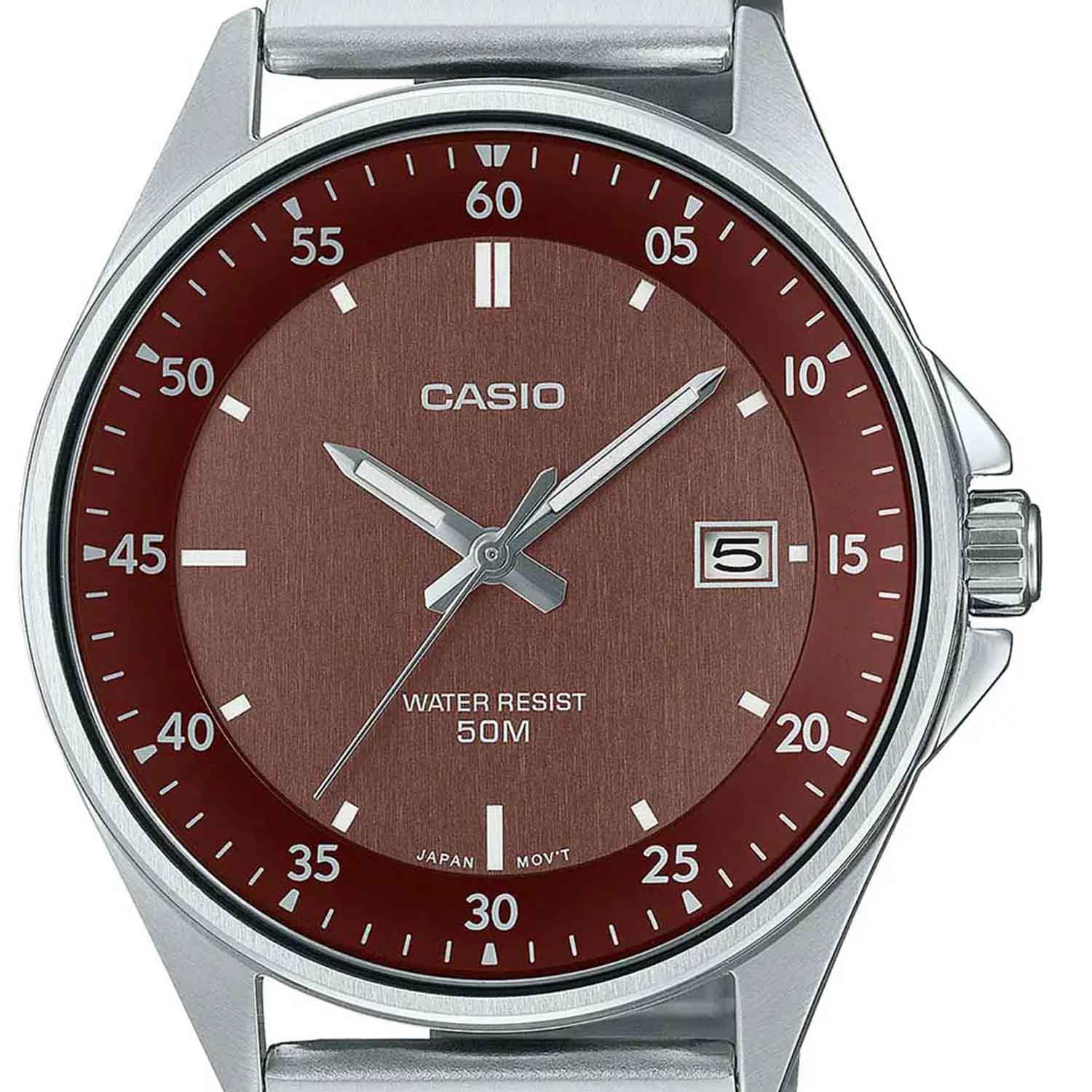 Мужские японские часы из коллекции MTP Collection MTP-E705D-5E помогут добавить в повседневный образ элегантные и лаконичные нотки.