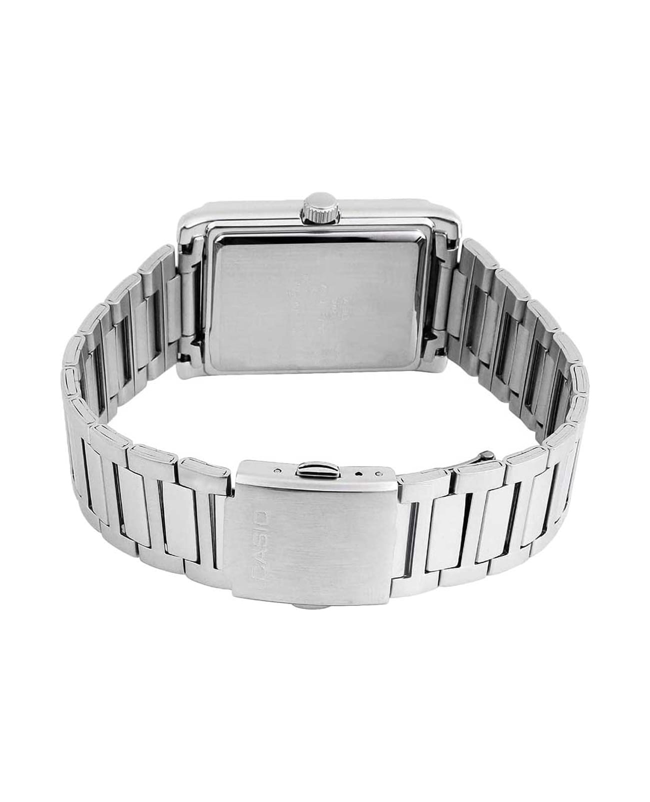 Японские мужские кварцевые часы с минеральным стекломМинеральное стеклоМинеральное стекло представляет собой искусственно выращенный минерал кварца. Такое стекло отличается особой устойчивостью к повреждениям и царапинам. Уступает по некоторым качествам сапфировому стеклу. Casio Collection MTP-M105D-7A, кварцевый механизм с высокой точностью. Корпус и барслет часов изготовлены из нержавеющей стали. Циферблат с метками в виде штрихов выполнен по технологии Sunray (солнечные лучи). Указатель фаз Луны в положении 6 часов. Батарейка рассчитана на 3 года. Класс водозащиты: 50 метров, позволит защитить корпус от случайных брызг или капель дождя. Стальной браслет на раскладной застёжкеРаскладная застёжкаТакой тип застёжки используется только на браслетах из металла. Она никогда не раскрывается полностью, происходит разделение на 2 и более частей. Раскладывающая застёжка снизит вероятность потери часов к минимуму..