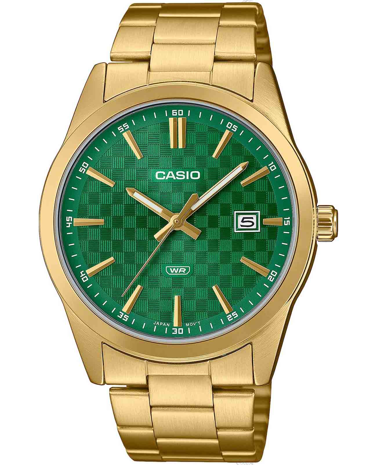 Мужские японские часы из коллекции Casio Collection MTP-VD03G-3AUDF (MTP-VD03G-3A) помогут добавить в повседневный образ элегантные и лаконичные нотки. Компактный циферблат выполнен в стиле шахматной доски. Контрастные стрелки и метки хорошо видны на его фоне. Корпус и браслет наручных часов сделаны из нержавеющей стали с IP-покрытиемIP-покрытиеМетод ионного напыления. Демонстрирует повышенную устойчивость к истиранию, окислению и химическим веществам. Под воздействием высокого давления и температуры около 1500°C молекулы металла надёжно соединяются с частицами корпуса часов., обладающей противокоррозионными свойствами. Высокоточный кварцевый механизм. Надёжный корпус из нержавеющей стали. Минеральное стеклоМинеральное стеклоМинеральное стекло представляет собой искусственно выращенный минерал кварца. Такое стекло отличается особой устойчивостью к повреждениям и царапинам. Уступает по некоторым качествам сапфировому стеклу.. Апертура даты на отметке 3 часа. Стрелки с люминесцентным покрытиемЛюминесцентное покрытиеПозволяет считывать показания времени в темноте. Производители наносят на стрелки, часовые индексы, безель или поверхность циферблата светонакопительный состав, дающий холодное свечение.. Стальной браслет на раскладной застёжкеРаскладная застёжкаТакой тип застёжки используется только на браслетах из металла. Она никогда не раскрывается полностью, происходит разделение на 2 и более частей. Раскладывающая застёжка снизит вероятность потери часов к минимуму..