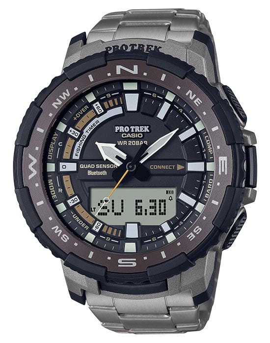 Мужские японские часы с цифровым компасом Casio Pro Trek PRT-B70T-7, кварцевый механизм с высокой точностью. Класс водозащиты: 200 метров, позволит плавать, нырять и заниматься другими водными видами спорта. Корпус часов изготовлен из пластика, цвета.