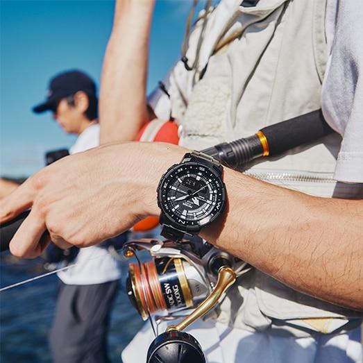 Японские мужские многофункциональные часы PRT-B70YT-1E из коллекции Pro Trek. Любители рыбалки могут положиться на эти часы, зная, что тщательное внимание к деталям, таким как широкий циферблат, большой вращающийся безель из алюминия и стреловидные стрелки, гарантируют превосходную видимость и легкое чтение. Функции: BluetoothBluetoothСовременная технология, позволяющая синхронизировать часы с телефоном и переносить данные. Часы с Bluetooth расширяют возможности вашего смартфона и делают его использование ещё более удобным. с подключением через приложение PRO TREK Connected, автоматическая светодиодная подсветка, ударопрочный корпусУдаропрочный корпусМеханизм заключён в корпус, выполненный из современных материалов, устойчивых к ударам, механическим повреждениям и падению с высоты: инновационный пластик, карбон, нержавеющая сталь, титан., функция Мирового времениМировое время Полезное часовое усложнение, отображающее время в основных городах и известных областях по всему миру, оно связано с часовыми поясами, удобно для путешественников и бизнесменов. ,лунный календарь, график приливов, секундомерСекундомерСекундоме́р — прибор, способный измерять интервалы времени с точностью до долей секунды., таймерТаймерОтсчитывает секунды в обратном направлении в заданном интервале времени., 5 будильниковБудильникБуди́льник — часы, в заданный момент времени подающие звуковой, световой и/или в редких случаях другой сигнал., альтиметрАльтиме́трАльтиме́тр (или высотоме́р) – прибор для измерения высоты над уровнем моря. Необходим при ориентировании в горах, в т.ч. в условиях плохой видимости; оповещает о перепадах высот, о достижении заданной точки и т.д., шагомерШагомерШагоме́р или педо́метр — измерительный прибор для подсчёта количества сделанных шагов (или пар шагов) при ходьбе или беге.,, цифровой компас, термометр, многоязычность, автоматический календарь, 12/24 отображение времени. Минеральное стекло, корпус из полимерного пластика, алюминиевый безель и браслет, тройная застежка с системой блокировки кнопок, индикатор заряда батарейки, водонепроницаемость (20 бар). Габариты (Ш x В x Г) 57,5 х 50,8 х 16,8. Вес 103 г.