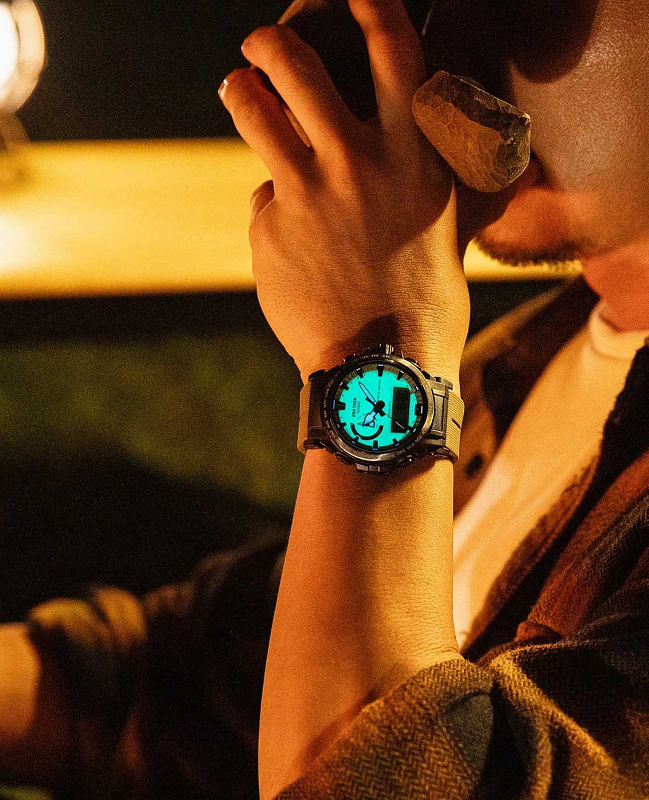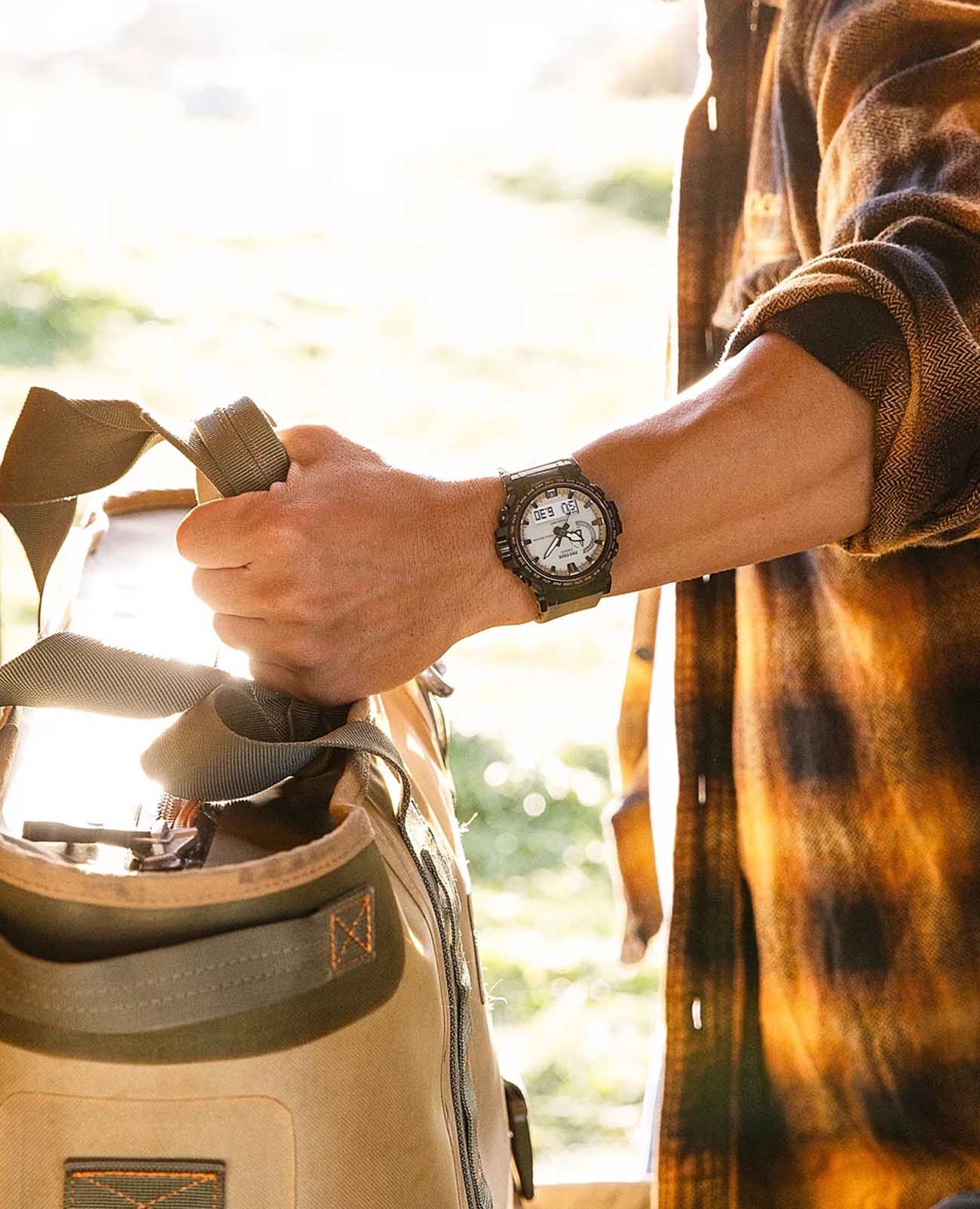 Мужские японские часы Casio Pro Trek PRW-61LD-5 из коллекции Pro Trek отличаются расширенным функционалом на все случаи жизни. Перед вами модель один из флагманов PRO TREK в черном корпусе PRW-61. Данные часы на бежевом полимерном ремешке получили улучшенную структуру корпуса, более устойчивую к ударным нагрузкам и еще более эффективную солнечную батарею, чем их предшественники из знаменитой серии PRW-6000. Особенностью модели является светлый циферблат, полностью покрытый необрайтовым, светящимся в темноте составом. В целом же, дизайн корпуса PRW-61 остался узнаваем и даже с такой начинкой, в которой можно отметить водонепроницаемость корпуса, термометр, барометр, высотомер, цифровой компас, Tough SolarTough SolarТехнология основана на подзарядке аккумулятора от источника солнечного света, специальная панель улавливает солнечные лучи и преобразует их в энергию для работы часов. Достаточно пары минут нахождения на солнце для функционирования часов в течении суток. и радио-синхронизацию, часы отлично подходят в качестве ежедневного аксессуара для жителя современного города. Минеральное стеклоМинеральное стеклоМинеральное стекло представляет собой искусственно выращенный минерал кварца. Такое стекло отличается особой устойчивостью к повреждениям и царапинам. Уступает по некоторым качествам сапфировому стеклу. устойчивое к появлению царапин, обладающее высокой прозрачностью. Отдельно стоит отметить эко-френдли полимер из которого сделаны ремешок, корпус и задняя крышка часов. В данной модели используется пластиковый полимер, сделанный из семян клещевины и кукурузы, а не из нефти, как это обычно бывает. Такой вид полимера является более биологически чистым и меньше загрязняет окружающую среду. Неподвижный безельБезельВнешний ободок, закрепляющий стекло. В спортивных часах так называется поворотное кольцо с делениями на циферблате, выполняет роль таймера – замеряет отрезки времени на шкале. Неподвижный безель – элемент декора. Однонаправленно вращающийся безель на дайверских часах позволяет фиксировать моменты погружения и выныривания на поверхность. из стали с IP-покрытиемIP-покрытиеМетод ионного напыления. Демонстрирует повышенную устойчивость к истиранию, окислению и химическим веществам. Под воздействием высокого давления и температуры около 1500°C молекулы металла надёжно соединяются с частицами корпуса часов.. Функции мирового времениМировое время Полезное часовое усложнение, отображающее время в основных городах и известных областях по всему миру, оно связано с часовыми поясами, удобно для путешественников и бизнесменов. – 29 часовых поясов и UTCUTCВсемирное кординационное время, не имеющее привязки к географическому положению Гринвича, основывается на атомном отсчёте времени. Регулировка времени осуществляется более точно, чем устаревшее GMT.