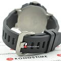 Модель с зелёными деталями отражает спортивный стиль и выигрышно смотрится на запястье. Ударопрочный корпусУдаропрочный корпусМеханизм заключён в корпус, выполненный из современных материалов, устойчивых к ударам, механическим повреждениям и падению с высоты: инновационный пластик, карбон, нержавеющая сталь, титан. выполнен из пластика и стали 316L с IP-покрытиемIP-покрытиеМетод ионного напыления. Демонстрирует повышенную устойчивость к истиранию, окислению и химическим веществам. Под воздействием высокого давления и температуры около 1500°C молекулы металла надёжно соединяются с частицами корпуса часов., что делает его устойчивым к различным видам повреждений. Наручные часы с японским кварцевым механизмом работают от солнечной батареи , функция сохранения энергии увеличивает срок работы часов без подзарядки до 21 месяца. Сапфировое стекло с покрытием «антиблик». Двойная светодиодная подсветкаСветодиодная подсветкаСветодиодная или LED-подсветка обеспечивает появление яркого холодного свечения за счёт LED-элементов - маленьких лампочек. Они потребляют минимальное количество энергии, чаще всего можно встретить 1 светодиод, в нижней части циферблата.. Водостойкость 20 бар. Устойчивость к температуре ниже -10°C. Коррекция времени радиосигналом, барометр, лунный календарь, высотомер, таймер, график восхода и заката солнца, датчик приливов и отливов, мировое времяМировое время Полезное часовое усложнение, отображающее время в основных городах и известных областях по всему миру, оно связано с часовыми поясами, удобно для путешественников и бизнесменов. – 31 часовой пояс, календарь, хронографХронографФункция позволяет измерять отрезки времени с особой точностью: часы, минуты, секунды. Верным признаком хронографа является наличие на циферблате 3 дополнительных окошек-счётчиков.. Таймер рыбалки подсказывает, какое время оптимально подходит для ловли рыбы. Габариты: 51 x 50 x 15 мм.