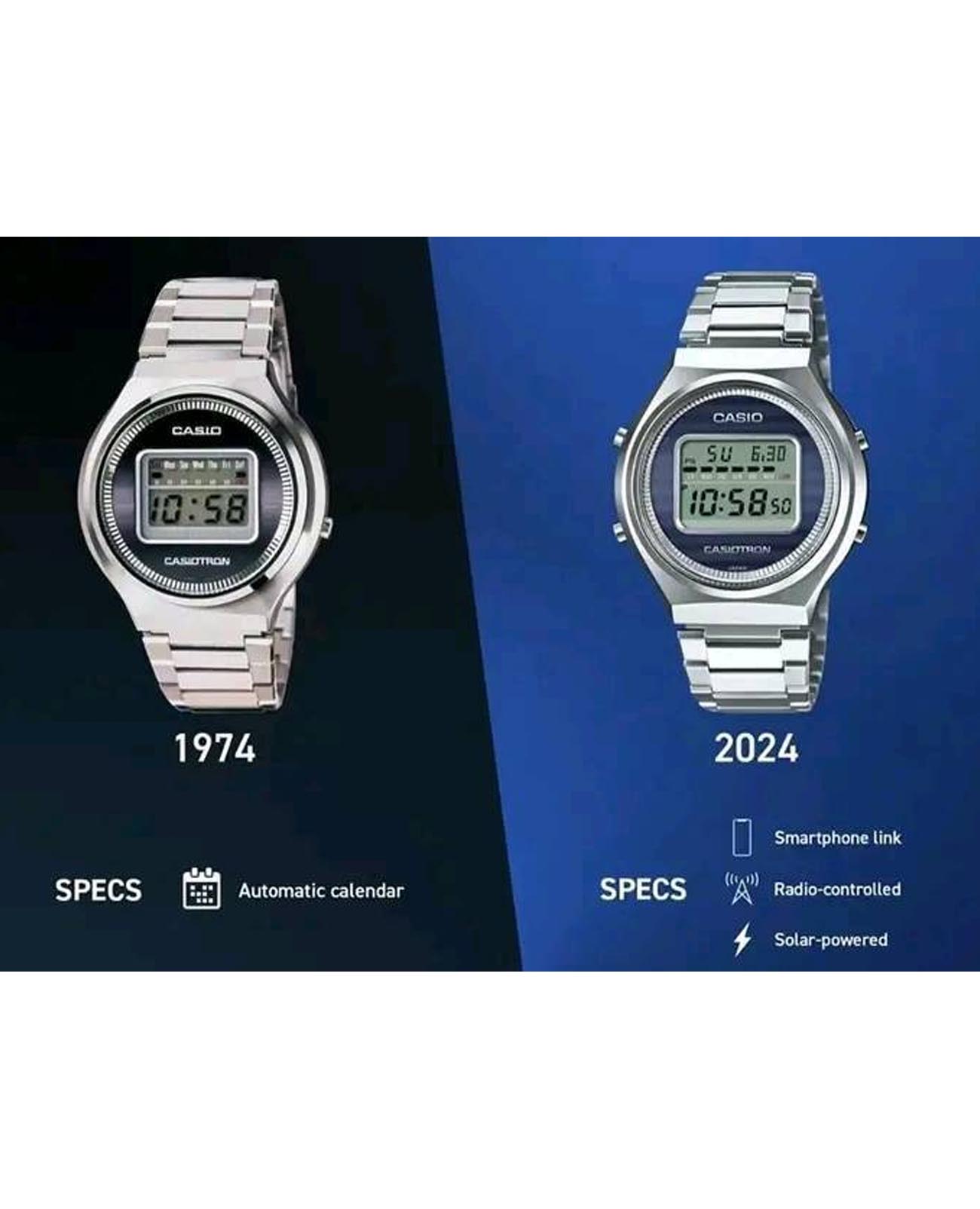 Японские наручные часы-хронографХронографФункция позволяет измерять отрезки времени с особой точностью: часы, минуты, секунды. Верным признаком хронографа является наличие на циферблате 3 дополнительных окошек-счётчиков. Casio CASIOTRON TRN-50-2ADR, кварцевый механизм с высокой точностью. Линейка CasioTron произвела революцию в часовой индустрии, появившись в 1974 году. Эти цифровые часы не только обеспечивали точное хронометражирование, но и обладали инновационными функциями, такими как будильники, секундомеры и калькуляторы. Использование кварцевой технологии обеспечило точное хронометражирование, а культовый светодиодныйСветодиодная подсветкаСветодиодная или LED-подсветка обеспечивает появление яркого холодного свечения за счёт LED-элементов - маленьких лампочек. Они потребляют минимальное количество энергии, чаще всего можно встретить 1 светодиод, в нижней части циферблата. дисплей сделал часы легко читаемыми при любом освещении. Все часы CASIOTRON ограниченной серии TRN-50-2 CASIOTRON имеют уникальный серийный номер, подчеркивающий их эксклюзивность, поскольку они являются одними из 4000 экземпляров, доступных по всему миру. Минеральное стеклоМинеральное стеклоМинеральное стекло представляет собой искусственно выращенный минерал кварца. Такое стекло отличается особой устойчивостью к повреждениям и царапинам. Уступает по некоторым качествам сапфировому стеклу. устойчивое к появлению царапин, обладающее высокой прозрачностью. Корпус часов изготовлен из стали. Tough SolarTough SolarТехнология основана на подзарядке аккумулятора от источника солнечного света, специальная панель улавливает солнечные лучи и преобразует их в энергию для работы часов. Достаточно пары минут нахождения на солнце для функционирования часов в течении суток.. Новый модуль 3542 предлагает расширенные функции, такие как мощное солнечное питание, 6-полосная радиоуправляемая регулировка времени и связь со смартфоном по BluetoothBluetoothСовременная технология, позволяющая синхронизировать часы с телефоном и переносить данные. Часы с Bluetooth расширяют возможности вашего смартфона и делают его использование ещё более удобным.. Коррекция текущего времени радиосигналом на территории почти всей Европы, США, Японии и Китая. СекундомерСекундомерСекундоме́р — прибор, способный измерять интервалы времени с точностью до долей секунды. с точностью показаний 1/10с и временем измерения 1ч. ТаймерТаймерОтсчитывает секунды в обратном направлении в заданном интервале времени. обратного отсчета от 1мин до 100мин. Мировое времяМировое время Полезное часовое усложнение, отображающее время в основных городах и известных областях по всему миру, оно связано с часовыми поясами, удобно для путешественников и бизнесменов. . 12-ти и 24-х часовой формат времени. Выбор языка отображения дня недели и месяца. Функция включения/отключения звука. Класс водозащиты: 50 метров, позволит защитить корпус от случайных брызг или капель дождя. Стальной браслет на раскладной застёжкеРаскладная застёжкаТакой тип застёжки используется только на браслетах из металла. Она никогда не раскрывается полностью, происходит разделение на 2 и более частей. Раскладывающая застёжка снизит вероятность потери часов к минимуму..