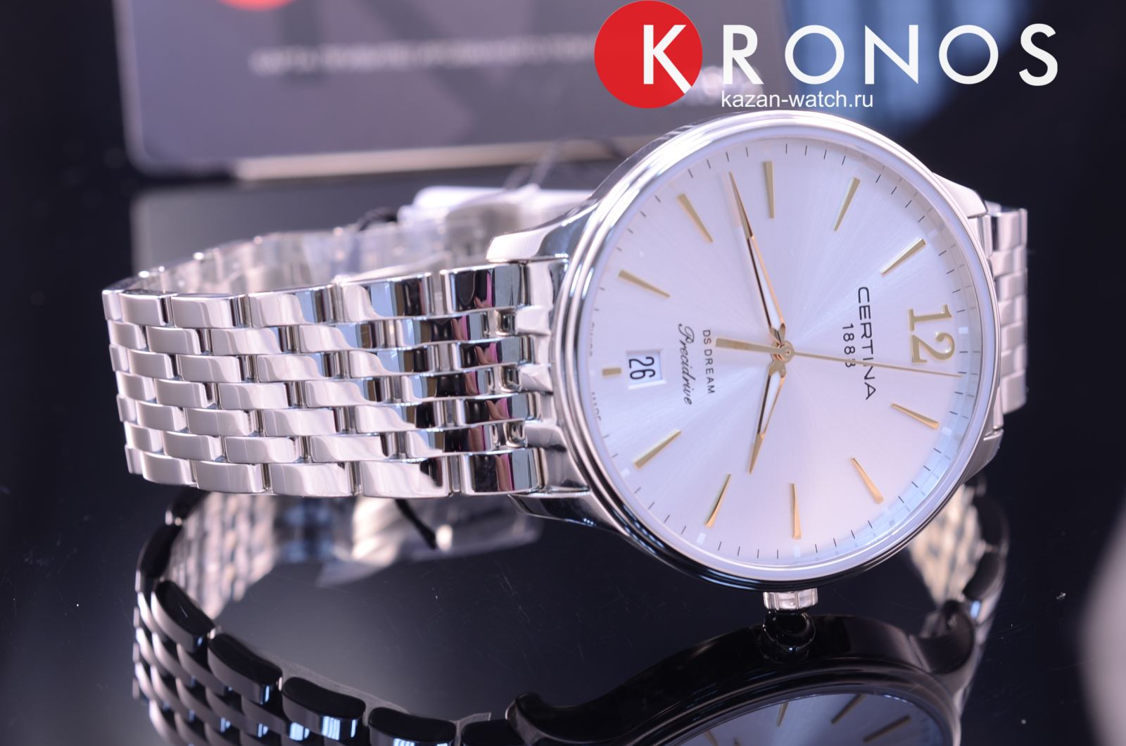 Модель станет неотъемлемой деталью образа, придаст ему завершенность. Наручные часы отражают собой классический стиль, что позволяет им стать универсальным вариантом на торжественный вечер, прогулку, деловую встречу. Высокая точность хода обеспечивается швейцарским кварцевым механизмом ETA F07.411 Precidrive™Precidrive™Инновационный кварцевый механизм Certina. Часы, оснащённые этим швейцарским калибром, приравниваются к точности к сертифицированным хронометрам, точность хода составляет +/-10 секунд в год.. Сапфировое стекло с антибликовым покрытием. Концепция Двойной Надёжности DS ConceptDS ConceptDouble Security Concept, обозначает двойную надёжность и безупречную точность часов Certina. Двойная система защиты подразумевает обеспечение максимальной устойчивости к ударам и высоких показателей водонепроницаемости.. Водостойкость 100 метров. Люминесцентная подсветкаЛюминесцентное покрытиеПозволяет считывать показания времени в темноте. Производители наносят на стрелки, часовые индексы, безель или поверхность циферблата светонакопительный состав, дающий холодное свечение. стрелок. Корпус и браслет из нержавеющей стали 316L. Безопасная . Прямоугольная апертура даты, индикатор EOLEOLПредставляет собой систему, уведомляющую владельца часов о необходимости замены элемента питания. За 2 недели до полного разряда батарейки секундная стрелка перестаёт ходить чётко и начинает перепрыгивать на 3-4 деления.. Диаметр корпуса: 38 мм.