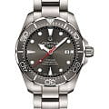Стильный аксессуар воплощает собой дайверскую тематику, он способен сохранять водостойкость при давлении до 30 бар. Лаконично выглядит серый циферблат в сочетании с серебристым блеском титана, из которого изготовлены ударопрочный корпусУдаропрочный корпусМеханизм заключён в корпус, выполненный из современных материалов, устойчивых к ударам, механическим повреждениям и падению с высоты: инновационный пластик, карбон, нержавеющая сталь, титан. и браслет. Наручные часы оснащены швейцарским механизмом ETA Powermatic 80Powermatic 80Эксклюзивный калибр от швейцарской компании ETA с увеличенным запасом хода до 80 часов за счёт удлинённой заводной пружины. Характеризуется улучшенной системой спуска со сниженным трением. с 80-часовым запасом хода. Завинчивающаяся заводная головка системой защиты. Антибликовое покрытие сапфирового стекла. Люминесцентная подсветкаЛюминесцентное покрытиеПозволяет считывать показания времени в темноте. Производители наносят на стрелки, часовые индексы, безель или поверхность циферблата светонакопительный состав, дающий холодное свечение. стрелок и меток. Надёжная застежка с фиксатором и удлинением для дайверовУдлинение для дайверовЗастёжка с удлинением для дайверов представляет собой безопасное крепление, которое позволяет надевать часы поверх гидрокостюма. Гибкая застёжка удлиняется на 1-2 миллиметра.. Диаметр корпуса: 43 мм.