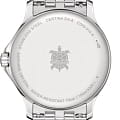 Стальной браслет из нескольких рядов переплетающихся звеньев элегантно выглядит на запястье. Ударопрочность и водонепроницаемость 10 бар – концепция DS ConceptDS ConceptDouble Security Concept, обозначает двойную надёжность и безупречную точность часов Certina. Двойная система защиты подразумевает обеспечение максимальной устойчивости к ударам и высоких показателей водонепроницаемости.. Одностороннее антибликовое покрытие стекла из сапфира. . Индикация текущего числа, функция EOLEOLПредставляет собой систему, уведомляющую владельца часов о необходимости замены элемента питания. За 2 недели до полного разряда батарейки секундная стрелка перестаёт ходить чётко и начинает перепрыгивать на 3-4 деления.. Диаметр корпуса: 31 мм.