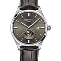 Стильная модель в классическом исполнении оснащена необычным часовым усложнением, окошко в нижней части циферблата отображает лунные фазы. Аксессуар безупречен не только с точки зрения дизайна, он демонстрирует выдающуюся точность хода швейцарского кварцевого механизма ETA F05.841. Такая особенность отмечена официальным сертификатом хронометра COSCСертификат COSCОфициальный сертификат, подтверждающий то, что часы ходят с особо высокой точностью. Для получения документа часы подвергаются тестовым испытаниям, разработанным швейцарским институтом тестирования хронометров COSC. Допустимая норма для механических часов -4/+6 секунд в день, для кварцевых моделей +/- 0,07 секунд в день.. Сапфировое стекло с односторонним антибликовым покрытием. Соблюдение концепции DS ConceptDS ConceptDouble Security Concept, обозначает двойную надёжность и безупречную точность часов Certina. Двойная система защиты подразумевает обеспечение максимальной устойчивости к ударам и высоких показателей водонепроницаемости.. Водостойкость 100 метров. Люминесцентная подсветкаЛюминесцентное покрытиеПозволяет считывать показания времени в темноте. Производители наносят на стрелки, часовые индексы, безель или поверхность циферблата светонакопительный состав, дающий холодное свечение.. Корпус из стали 316L с противокоррозионными свойствами. Ремешок из натуральной кожи. . Функция EOLEOLПредставляет собой систему, уведомляющую владельца часов о необходимости замены элемента питания. За 2 недели до полного разряда батарейки секундная стрелка перестаёт ходить чётко и начинает перепрыгивать на 3-4 деления., отображение текущего числа. Диаметр корпуса: 41 мм.