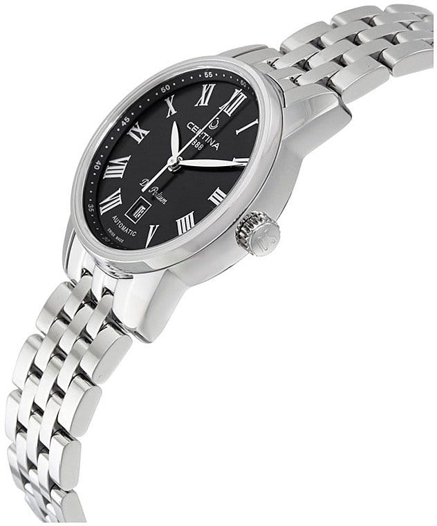 Элегантный аксессуар обладает вневременным дизайном, чёрный циферблат дополнен римскими цифрами с винтажным оттенком. Часы с автоматической системой завода для своей работы используют энергию от движений руки носительницы, позволяя забыть о необходимости регулярного завода. Швейцарский механизм ETA 2671 с 38-часовым запасом хода. Скелетонизированная задняя крышка. Сапфировое стекло с двухсторонней обработкой «антиблик». Концепция Double SecurityDS ConceptDouble Security Concept, обозначает двойную надёжность и безупречную точность часов Certina. Двойная система защиты подразумевает обеспечение максимальной устойчивости к ударам и высоких показателей водонепроницаемости.. Корпус и браслет из нержавеющей стали 316L. Водозащита 100 метров. . Отображение числа. Диаметр корпуса: 29 мм.