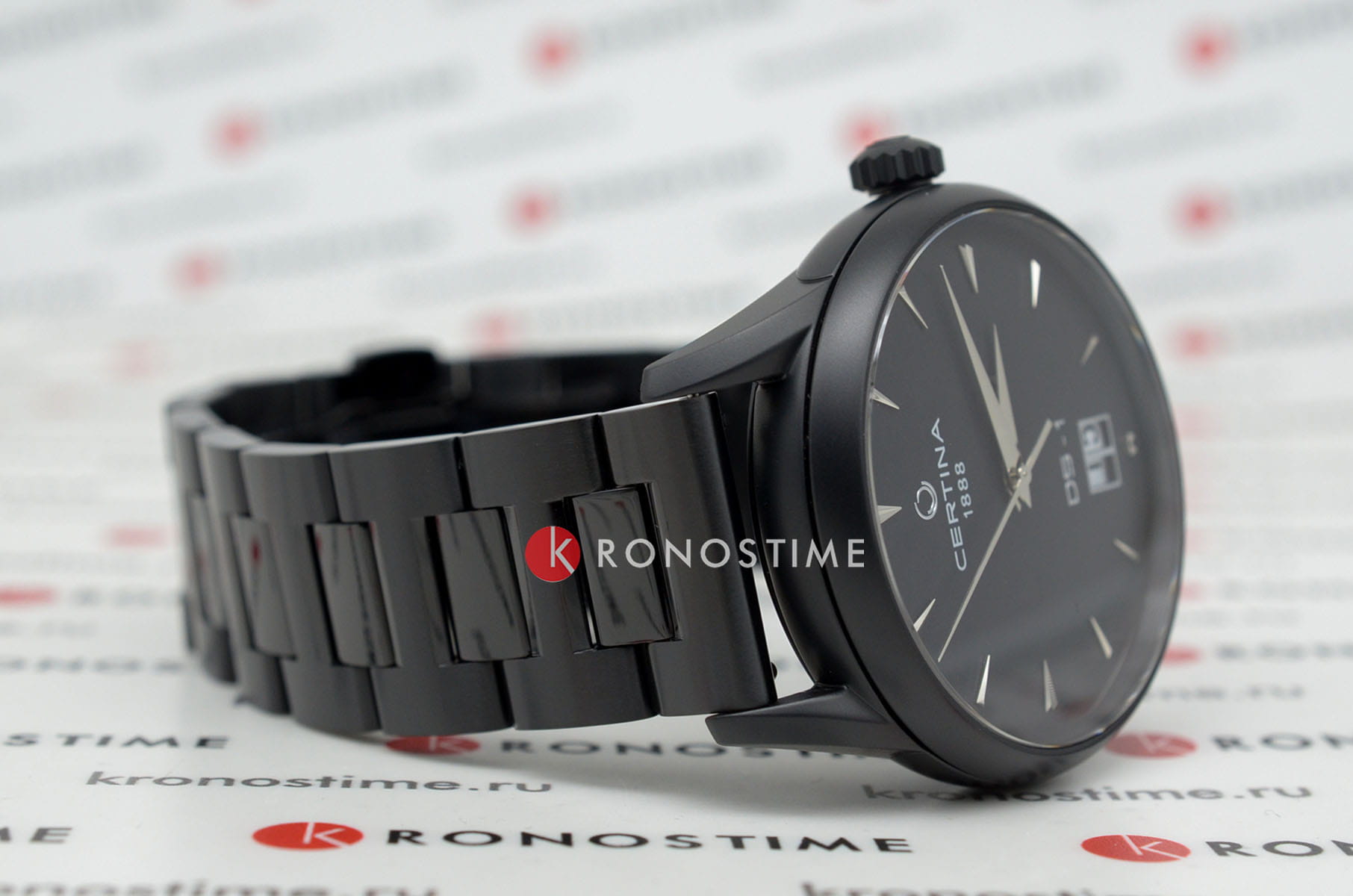 Мужские механические часы Certina C029.426.33.051.00 — это воплощение швейцарского мастерства и современной надёжности. Модель выполнена из нержавеющей стали с PVD-покрытиемPVDУльтратонкое покрытие наносится в технике вакуумного напыления, сочетает в себе нитрид титана особой прочности со слоем золота или оксида хрома. Несёт в себе декоративную или защитную функцию., что придаёт ей устойчивость к царапинам и элегантный внешний вид. Корпус диаметром 41 мм имеет толщину 11 мм, а циферблат чёрного цвета дополнен крупным окошком даты, обеспечивающим удобство считывания информации. Защиту механизма обеспечивает сапфировое стеклоСапфировое стеклоПрочный и надёжный материал из кристалла сапфира синтетического происхождения, характеризующийся особой твёрдостью и устойчивостью к царапинам и повреждениям. с антибликовым покрытием, устойчивое к повреждениям и обеспечивающее чёткую видимость показаний. Часы обладают водонепроницаемостью , что позволяет использовать их при плавании и других водных активностях. Механизм Powermatic 80Powermatic 80Эксклюзивный калибр от швейцарской компании ETA с увеличенным запасом хода до 80 часов за счёт удлинённой заводной пружины. Характеризуется улучшенной системой спуска со сниженным трением. гарантирует запас хода до 80 часов и повышенную точность. Защита от ударов и вибраций реализована благодаря технологии DS (Double Security)Ударопрочный корпусМеханизм заключён в корпус, выполненный из современных материалов, устойчивых к ударам, механическим повреждениям и падению с высоты: инновационный пластик, карбон, нержавеющая сталь, титан., что делает модель особенно надёжной в условиях активной эксплуатации. Эти часы станут универсальным аксессуаром для тех, кто ценит сочетание классического дизайна, швейцарского качества и функциональности — идеальный выбор для повседневной носки и торжественных случаев.