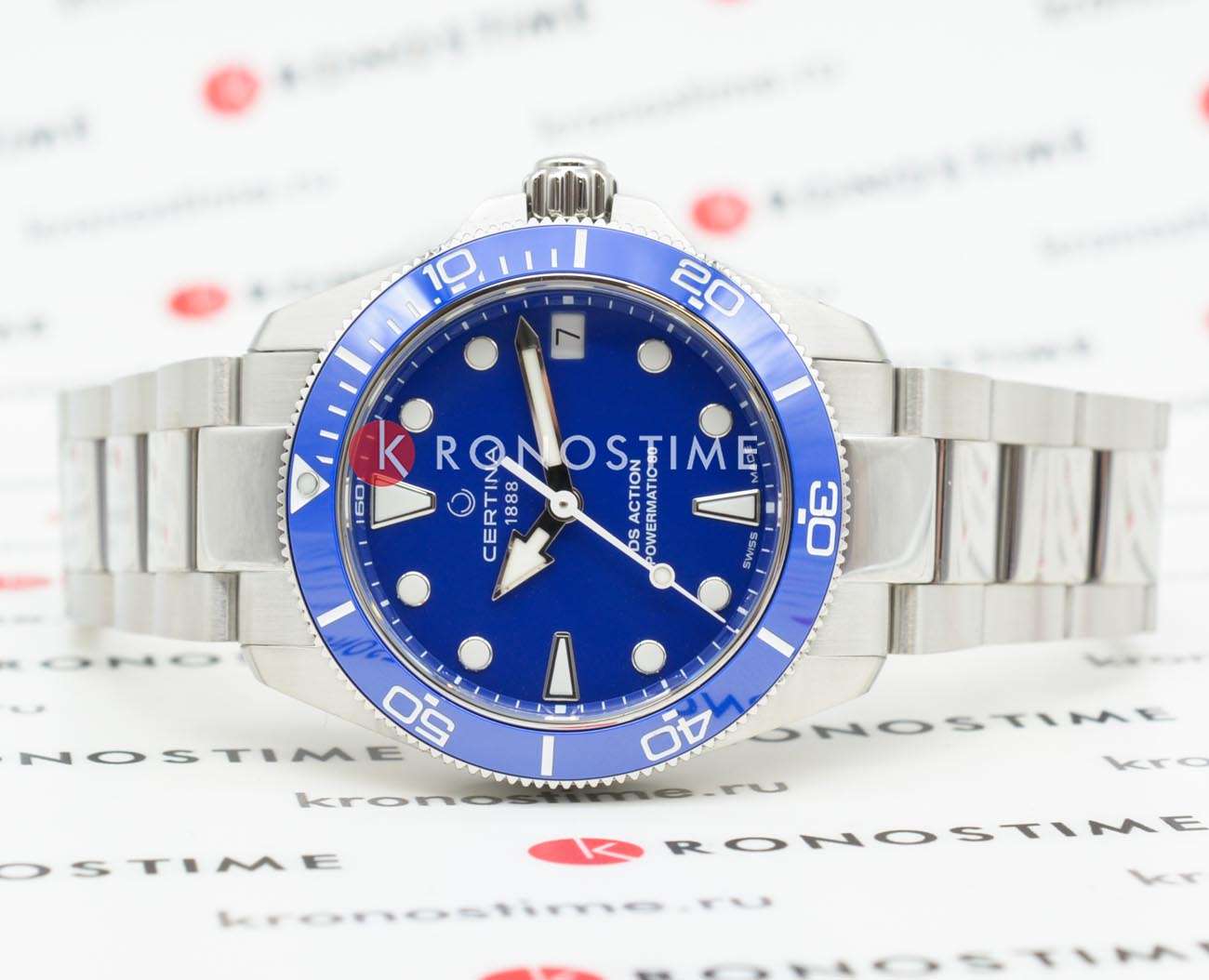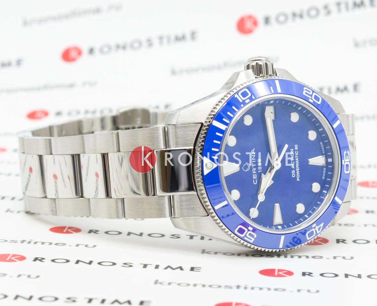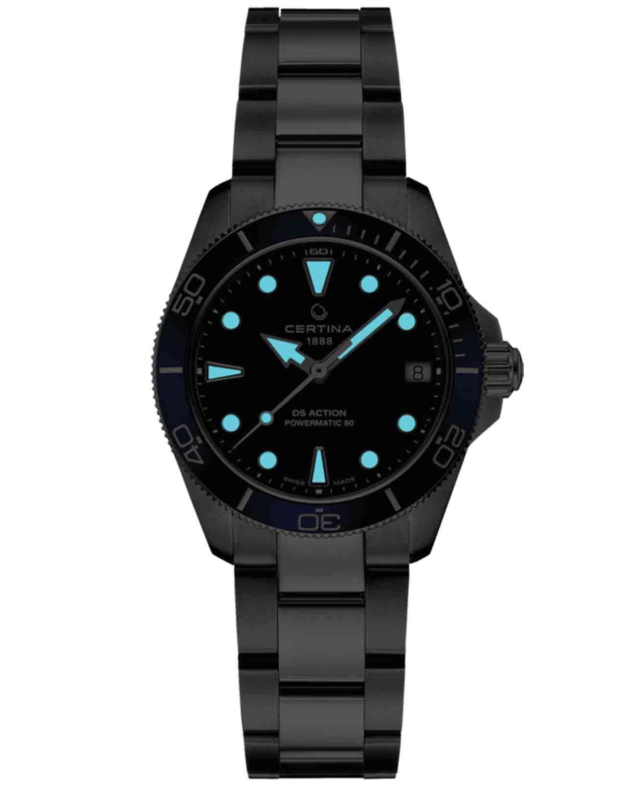 Certina DS Action Lady C032.007.11.041.00 – женские часы для поклонников ярких аксессуаров. И корпус, и браслет изготовлены из высококачественной нержавеющей стали 316L. Под твердым сапфировым стекломСапфировое стеклоПрочный и надёжный материал из кристалла сапфира синтетического происхождения, характеризующийся особой твёрдостью и устойчивостью к царапинам и повреждениям. с антибликовым покрытиемАнтибликовое покрытиеСлой оксида металла в 0,13-0,3 микрон, благодаря которому стекло часов не бликует и не отражает свет. Антибликовое покрытие уменьшает отражение света в 10 раз, обеспечивая отличную читаемость показателей циферблата. находится синий циферблат, на котором вы найдете окошко даты в положении 3 часа и маркировку, покрытую люминесцентным покрытиемЛюминесцентное покрытиеПозволяет считывать показания времени в темноте. Производители наносят на стрелки, часовые индексы, безель или поверхность циферблата светонакопительный состав, дающий холодное свечение. Super-LumiNova. Керамический безельБезельВнешний ободок, закрепляющий стекло. В спортивных часах так называется поворотное кольцо с делениями на циферблате, выполняет роль таймера – замеряет отрезки времени на шкале. Неподвижный безель – элемент декора. Однонаправленно вращающийся безель на дайверских часах позволяет фиксировать моменты погружения и выныривания на поверхность. с минутной шкалой вращается в одном направлении, что позволяет удобно измерять временные отрезки. Все это приводится в действие автоматическим механизмом Powermatic 80Powermatic 80Эксклюзивный калибр от швейцарской компании ETA с увеличенным запасом хода до 80 часов за счёт удлинённой заводной пружины. Характеризуется улучшенной системой спуска со сниженным трением..611 с пружиной Nivachron™Nivachron™Специально разработанный инновационный сплав Nivachron™ повышает устойчивость часов к воздействию магнитных полей.. Класс водозащиты: 300 метров, позволит плавать, нырять и заниматься другими водными видами спорта. Стальной браслет на застёжке-бабочке с кнопкамиЗастёжка "бабочка"Такой вид застёжки дополняется предохранителями, помогающими избежать случайного раскрытия браслета. Обладают изящным исполнением. .