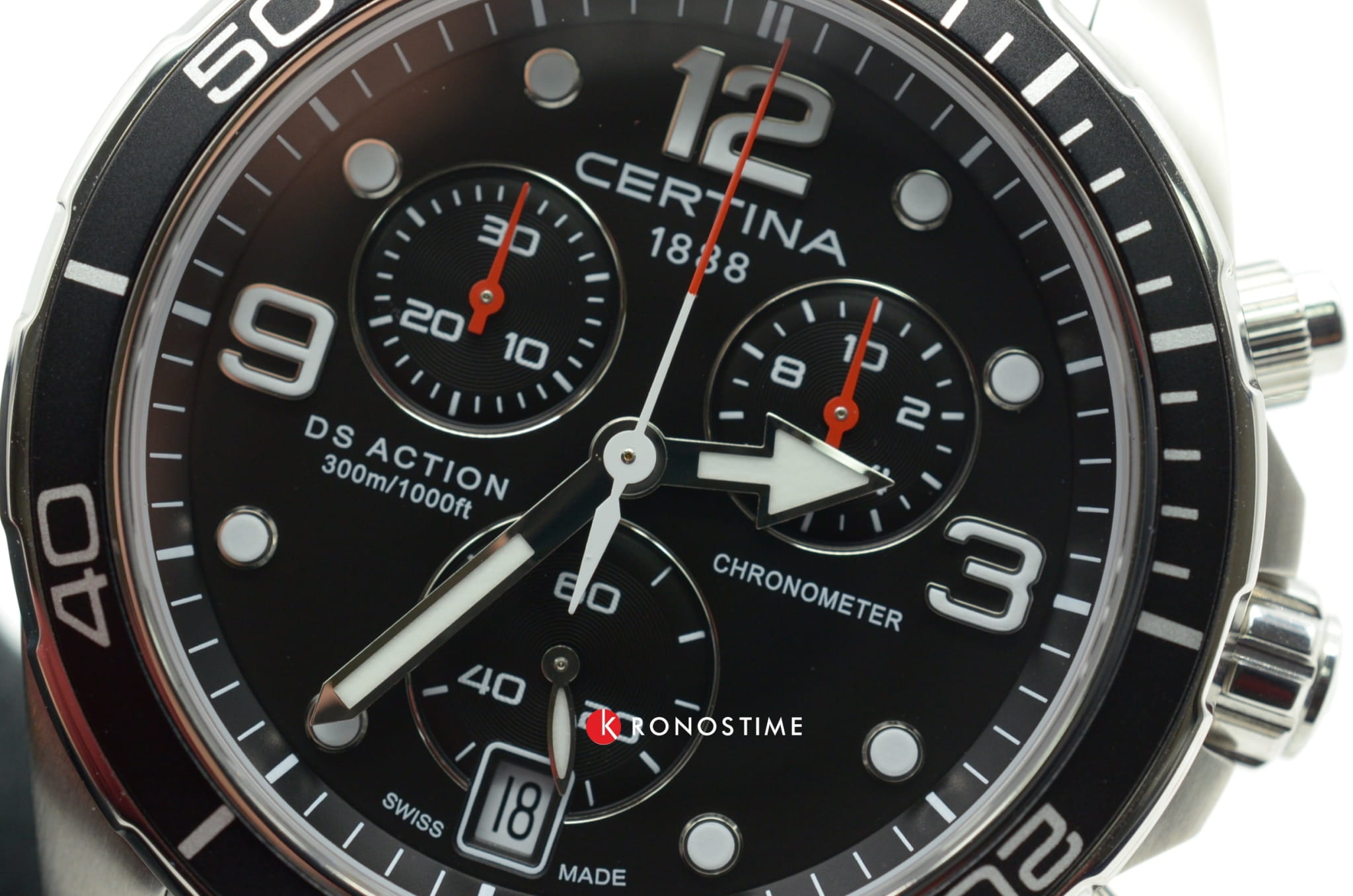 Дайверский хронографХронографФункция позволяет измерять отрезки времени с особой точностью: часы, минуты, секунды. Верным признаком хронографа является наличие на циферблате 3 дополнительных окошек-счётчиков. в чёрно-серебристом исполнении станет идеальным завершением делового, повседневного образа. Аксессуар дополнен безелемБезельВнешний ободок, закрепляющий стекло. В спортивных часах так называется поворотное кольцо с делениями на циферблате, выполняет роль таймера – замеряет отрезки времени на шкале. Неподвижный безель – элемент декора. Однонаправленно вращающийся безель на дайверских часах позволяет фиксировать моменты погружения и выныривания на поверхность. из анодированного алюминия, что облегчает конструкцию часов. Модель сделана из хирургической стали 316L, востребованной благодаря прочности и устойчивости к коррозии. Точность хода швейцарского механизма G10.212 AA PRECIDRIVE приравнивается к хронометрической, что подтверждено сертификатом COSCСертификат COSCОфициальный сертификат, подтверждающий то, что часы ходят с особо высокой точностью. Для получения документа часы подвергаются тестовым испытаниям, разработанным швейцарским институтом тестирования хронометров COSC. Допустимая норма для механических часов -4/+6 секунд в день, для кварцевых моделей +/- 0,07 секунд в день.. Улучшению читаемости показателей в солнечные дни способствует антибликовое покрытие сапфирового стекла. Максимальная водостойкость 300 метров. Концепция DSDS ConceptDouble Security Concept, обозначает двойную надёжность и безупречную точность часов Certina. Двойная система защиты подразумевает обеспечение максимальной устойчивости к ударам и высоких показателей водонепроницаемости.. Люминесцентная подсветкаЛюминесцентное покрытиеПозволяет считывать показания времени в темноте. Производители наносят на стрелки, часовые индексы, безель или поверхность циферблата светонакопительный состав, дающий холодное свечение.. Секундомер, отображение даты. Диаметр корпуса: 43 мм.
