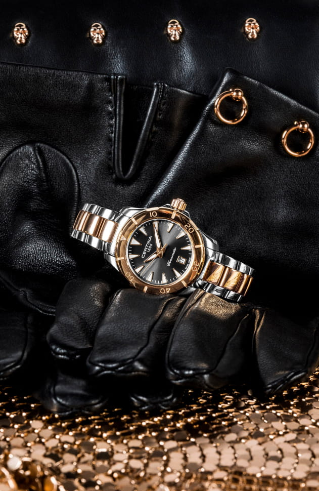Женские швейцарские часы Certina DS Action Lady C032.951.22.081.00 из коллекции DS Action символизируют любовь бренда к водной стихии и высокоточным механизмам. Компактный аксессуар создан по всем правилам дайверской тематики: вращающийся безель, крупная индикация времени, завинчивающаяся заводная головка и задняя крышка. Стильно смотрится серый циферблат в сочетании с холодным блеском нержавеющей стали 316L с PVD-покрытиемPVDУльтратонкое покрытие наносится в технике вакуумного напыления, сочетает в себе нитрид титана особой прочности со слоем золота или оксида хрома. Несёт в себе декоративную или защитную функцию..Часы оснащены швейцарским кварцевым калибром ETA F04.411 Precidrive™Precidrive™Инновационный кварцевый механизм Certina. Часы, оснащённые этим швейцарским калибром, приравниваются к точности к сертифицированным хронометрам, точность хода составляет +/-10 секунд в год., точность хода которого отмечена официальным сертификатом COSCСертификат COSCОфициальный сертификат, подтверждающий то, что часы ходят с особо высокой точностью. Для получения документа часы подвергаются тестовым испытаниям, разработанным швейцарским институтом тестирования хронометров COSC. Допустимая норма для механических часов -4/+6 секунд в день, для кварцевых моделей +/- 0,07 секунд в день.. Сапфировое стекло дополнено антибликовым покрытием. Функции: отображение даты, индикатор EOLEOLПредставляет собой систему, уведомляющую владельца часов о необходимости замены элемента питания. За 2 недели до полного разряда батарейки секундная стрелка перестаёт ходить чётко и начинает перепрыгивать на 3-4 деления.. Диаметр корпуса: 29 мм. Производство и сборка: Швейцария.