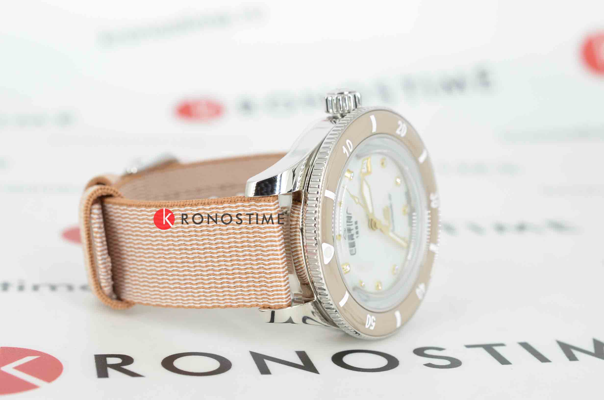 Модель Certina C036.207.18.116.00 из коллекции DS PH200M сочетает в себе элегантный дизайн и высокие технические характеристики. Корпус диаметром 39 мм выполнен из нержавеющей стали 316L, обеспечивая прочность и устойчивость к коррозии. Циферблат из белого перламутра украшен одиннадцатью бриллиантами и дополнен стрелками и индексами с покрытием из розового золота, покрытыми люминесцентным покрытиемЛюминесцентное покрытиеПозволяет считывать показания времени в темноте. Производители наносят на стрелки, часовые индексы, безель или поверхность циферблата светонакопительный состав, дающий холодное свечение. для отличной читаемости в темноте.