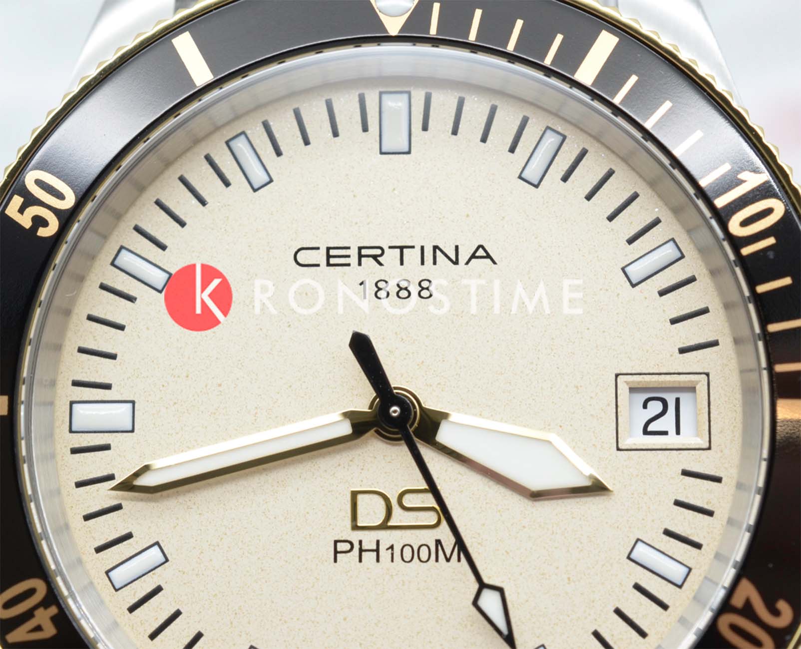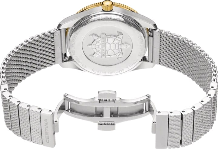 Certina DS PH100M Gent C044.410.21.030.00– часы для поклонников ярких аксессуаров. Корпус изготовлен из высококачественной нержавеющей стали 316L с . Под твердым сапфировым стекломСапфировое стеклоПрочный и надёжный материал из кристалла сапфира синтетического происхождения, характеризующийся особой твёрдостью и устойчивостью к царапинам и повреждениям. с антибликовым покрытиемАнтибликовое покрытиеСлой оксида металла в 0,13-0,3 микрон, благодаря которому стекло часов не бликует и не отражает свет. Антибликовое покрытие уменьшает отражение света в 10 раз, обеспечивая отличную читаемость показателей циферблата. находится бежевый циферблат на котором вы найдете окошко даты в положении 3 часа, а также маркировку, покрытую люминесцентным покрытиемЛюминесцентное покрытиеПозволяет считывать показания времени в темноте. Производители наносят на стрелки, часовые индексы, безель или поверхность циферблата светонакопительный состав, дающий холодное свечение. Super-LumiNova. Класс водозащиты: 100 метров, позволит плавать, нырять и заниматься другими водными видами спорта. Стальной ремешок миланского плетения на застёжке-бабочке с кнопкамиЗастёжка "бабочка"Такой вид застёжки дополняется предохранителями, помогающими избежать случайного раскрытия браслета. Обладают изящным исполнением. . БезельБезельВнешний ободок, закрепляющий стекло. В спортивных часах так называется поворотное кольцо с делениями на циферблате, выполняет роль таймера – замеряет отрезки времени на шкале. Неподвижный безель – элемент декора. Однонаправленно вращающийся безель на дайверских часах позволяет фиксировать моменты погружения и выныривания на поверхность. из нержавеющей стали с PVD-покрытиемPVDУльтратонкое покрытие наносится в технике вакуумного напыления, сочетает в себе нитрид титана особой прочности со слоем золота или оксида хрома. Несёт в себе декоративную или защитную функцию.
