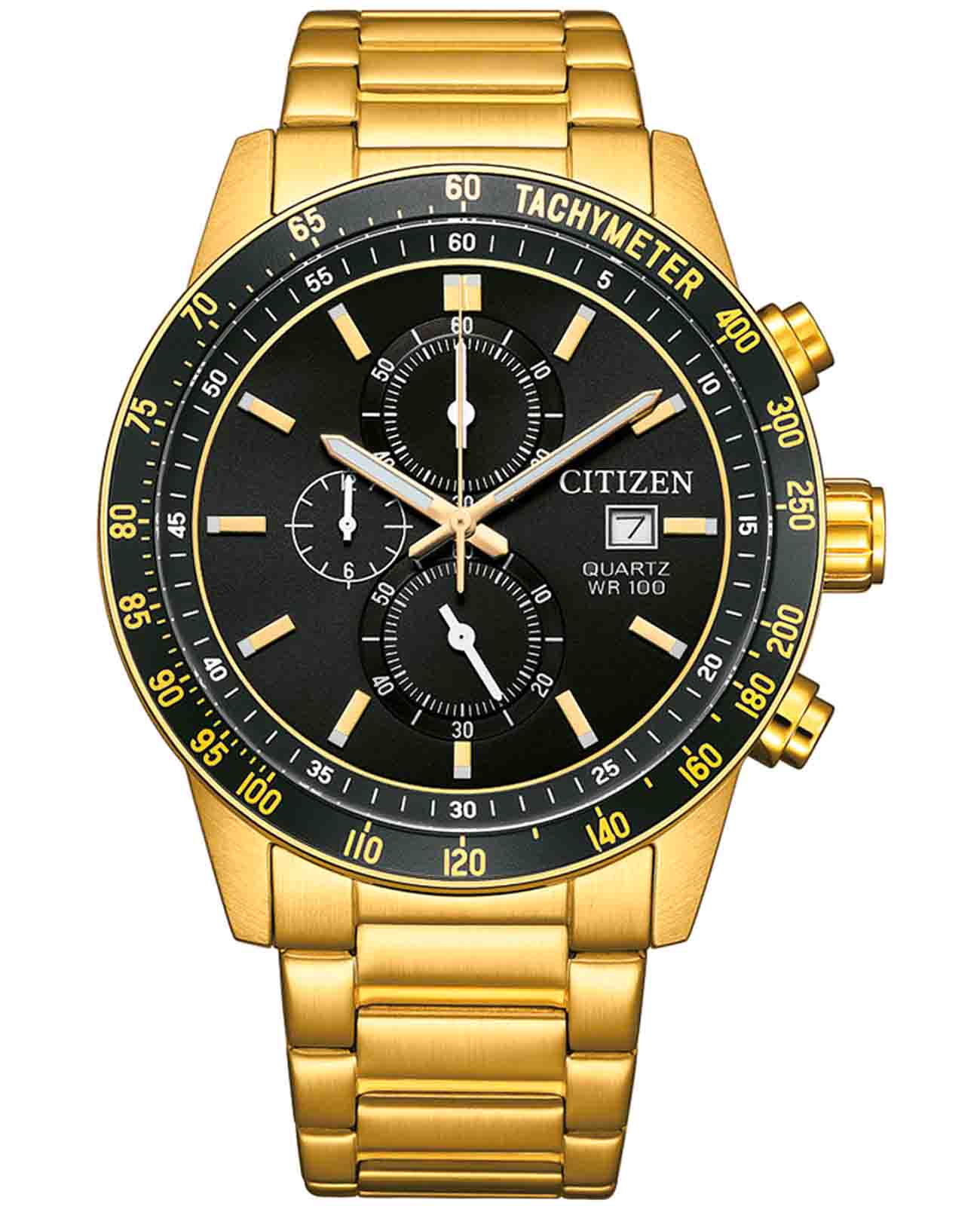 Citizen Chronograph AN3682-54E часы-хронографХронографФункция позволяет измерять отрезки времени с особой точностью: часы, минуты, секунды. Верным признаком хронографа является наличие на циферблате 3 дополнительных окошек-счётчиков. с секундомеромСекундомерСекундоме́р — прибор, способный измерять интервалы времени с точностью до долей секунды. спортивного дизайна с высоким уровнем водозащиты. Корпус из нержавеющей стали с IP-покрытиемIP-покрытиеМетод ионного напыления. Демонстрирует повышенную устойчивость к истиранию, окислению и химическим веществам. Под воздействием высокого давления и температуры около 1500°C молекулы металла надёжно соединяются с частицами корпуса часов. диаметром 44 мм идеально сбалансирован. Минеральное стеклоМинеральное стеклоМинеральное стекло представляет собой искусственно выращенный минерал кварца. Такое стекло отличается особой устойчивостью к повреждениям и царапинам. Уступает по некоторым качествам сапфировому стеклу. обеспечивает отличную защиту циферблата от царапин. Часы работают на основе кварцевого механизма. Стальной браслет на раскладной застёжкеРаскладная застёжкаТакой тип застёжки используется только на браслетах из металла. Она никогда не раскрывается полностью, происходит разделение на 2 и более частей. Раскладывающая застёжка снизит вероятность потери часов к минимуму. идеально дополняют дизайн часов, обеспечивая комфортное ношение. Стрелки и метки на циферблате имеют люминесцентное покрытиеЛюминесцентное покрытиеПозволяет считывать показания времени в темноте. Производители наносят на стрелки, часовые индексы, безель или поверхность циферблата светонакопительный состав, дающий холодное свечение. позволяющее легко определять время даже в темноте. БезельБезельВнешний ободок, закрепляющий стекло. В спортивных часах так называется поворотное кольцо с делениями на циферблате, выполняет роль таймера – замеряет отрезки времени на шкале. Неподвижный безель – элемент декора. Однонаправленно вращающийся безель на дайверских часах позволяет фиксировать моменты погружения и выныривания на поверхность. с IP-покрытиемIP-покрытиеМетод ионного напыления. Демонстрирует повышенную устойчивость к истиранию, окислению и химическим веществам. Под воздействием высокого давления и температуры около 1500°C молекулы металла надёжно соединяются с частицами корпуса часов. и шкалой тахиметраТахиметрРазмеченная шкала, располагается на ободке или безеле часов. Тахиметр позволяет рассчитать скорость на определённом участке пути, расстояние измеряется в километрах или милях.. Секундомер с точностью 1с и временем измерения 12ч отображается центральной стрелкой. Окошко даты находится в положении 3 часа. Часы обладают впечатляющей водонепроницаемостью до 100WR, что делает их идеальными для повседневной носки.