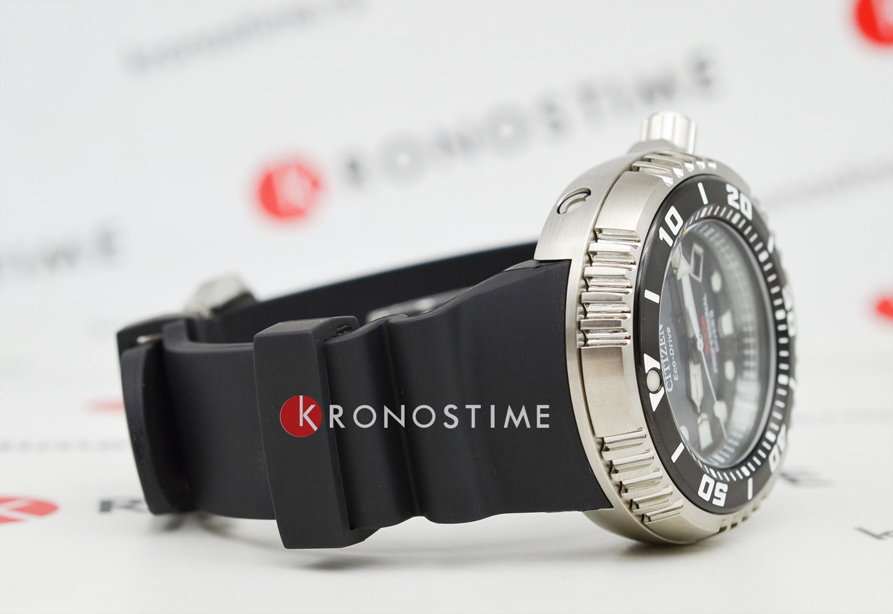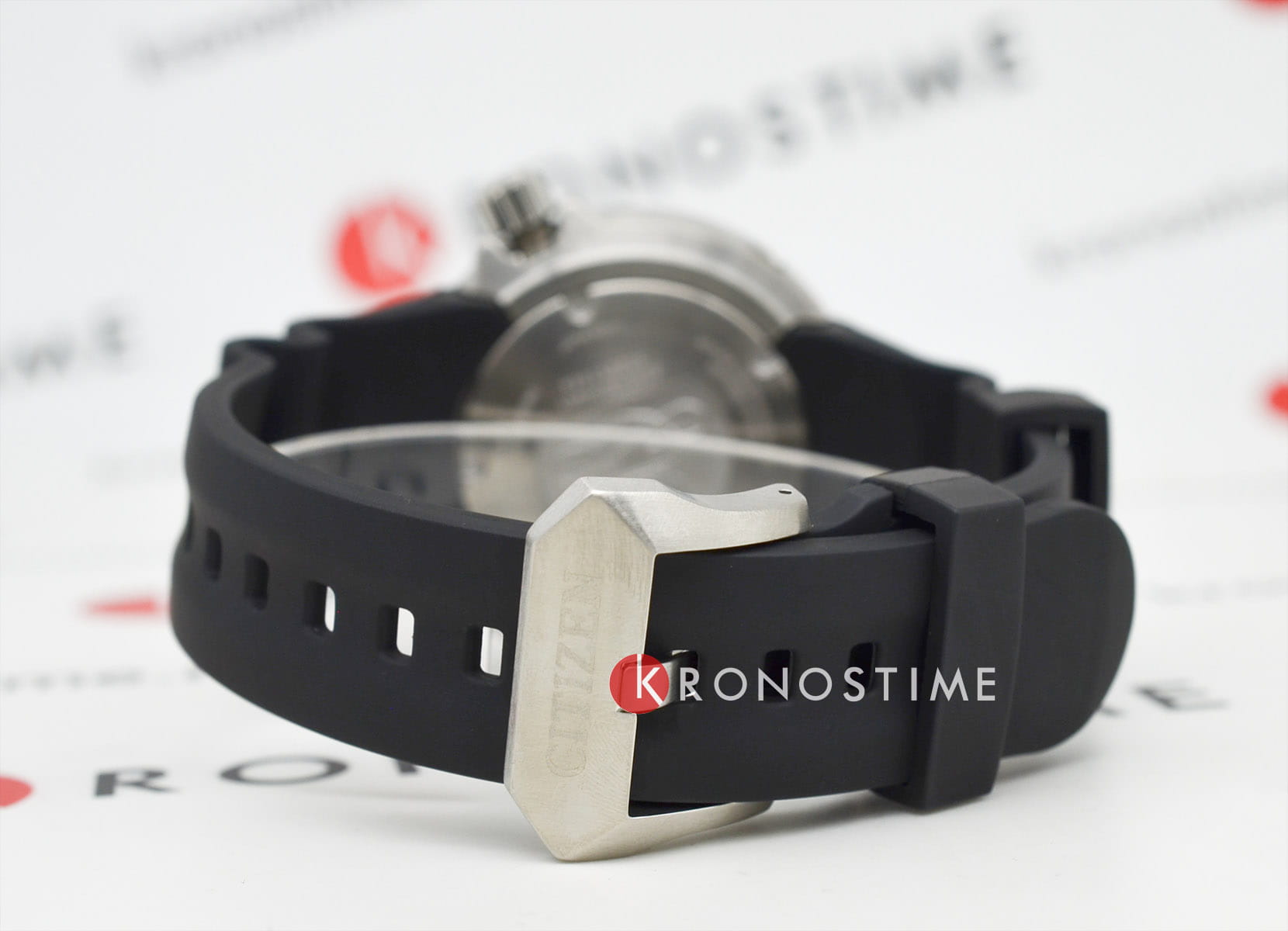 Мужские часы Citizen Promaster BN1024-01E спортивного дизайна с высоким уровнем водозащиты. Корпус из нержавеющей стали диаметром 46 мм идеально сбалансирован. Сапфировое стеклоСапфировое стеклоПрочный и надёжный материал из кристалла сапфира синтетического происхождения, характеризующийся особой твёрдостью и устойчивостью к царапинам и повреждениям. с антибликовым покрытием обеспечивает отличную защиту циферблата от царапин. Часы работают на основе кварцевого механизма, функция Eco-Drive (заряжается от любого источника света, не требующей замены батарейки). Каучуковый ремешок на стандартной застёжке идеально дополняют дизайн часов, обеспечивая комфортное ношение. Стрелки и метки на циферблате имеют люминесцентное покрытиеЛюминесцентное покрытиеПозволяет считывать показания времени в темноте. Производители наносят на стрелки, часовые индексы, безель или поверхность циферблата светонакопительный состав, дающий холодное свечение. позволяющее легко определять время даже в темноте. БезельБезельВнешний ободок, закрепляющий стекло. В спортивных часах так называется поворотное кольцо с делениями на циферблате, выполняет роль таймера – замеряет отрезки времени на шкале. Неподвижный безель – элемент декора. Однонаправленно вращающийся безель на дайверских часах позволяет фиксировать моменты погружения и выныривания на поверхность. с IP-покрытиемIP-покрытиеМетод ионного напыления. Демонстрирует повышенную устойчивость к истиранию, окислению и химическим веществам. Под воздействием высокого давления и температуры около 1500°C молекулы металла надёжно соединяются с частицами корпуса часов. вращается в одном направлении. Функция индикации заряда (EOL) и предотвращения перезарядки. Окошко даты находится в положении 4 часа. Часы обладают впечатляющей водонепроницаемостью до 300WR, что делает их идеальными для плавания, ныряния и погружений с аквалангом.