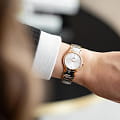 Женские наручные часы Sandara CO203.05 сочетают в себе элегантный дизайн и надежность современных технологий. Модель обладает круглым корпусом диаметром 28 мм, изготовленным из нержавеющей стали, что обеспечивает высокую устойчивость к внешним воздействиям. БезельБезельВнешний ободок, закрепляющий стекло. В спортивных часах так называется поворотное кольцо с делениями на циферблате, выполняет роль таймера – замеряет отрезки времени на шкале. Неподвижный безель – элемент декора. Однонаправленно вращающийся безель на дайверских часах позволяет фиксировать моменты погружения и выныривания на поверхность. с PVD-покрытиемPVDУльтратонкое покрытие наносится в технике вакуумного напыления, сочетает в себе нитрид титана особой прочности со слоем золота или оксида хрома. Несёт в себе декоративную или защитную функцию.. Браслет выполнен из нержавеющей стали с PVD-покрытиемPVDУльтратонкое покрытие наносится в технике вакуумного напыления, сочетает в себе нитрид титана особой прочности со слоем золота или оксида хрома. Несёт в себе декоративную или защитную функцию. и застежкой-бабочкойЗастёжка "бабочка"Такой вид застёжки дополняется предохранителями, помогающими избежать случайного раскрытия браслета. Обладают изящным исполнением. , которая отличается удобством использования и подходит для запястий любого размера благодаря своей посадке. Циферблат декорирован кристаллами, которые придают часам особый шик и неповторимый вид. Для защиты используется сапфировое стеклоСапфировое стеклоПрочный и надёжный материал из кристалла сапфира синтетического происхождения, характеризующийся особой твёрдостью и устойчивостью к царапинам и повреждениям., обеспечивающее прочную защиту от царапин. Часы работают на кварцевом механизме, что гарантирует точное время без необходимости подзаводки. Водонепроницаемость часов составляет 5 атмосфер, что позволяет использовать их в повседневной жизни, однако не рекомендуется для плавания или водных видов спорта.